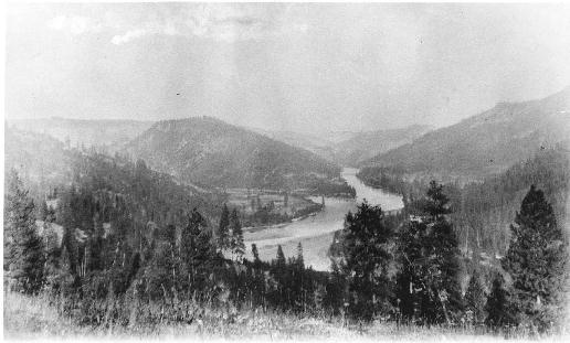 Canoe Camp along the Clearwater River, center of photo on left side of the Clearwater. Photo by Jane Gay c. 1889-1892. Photo courtesy the Nez Perce National Historical Park