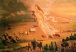 For the U.S. military, Steptoe’s "disaster" would not go unchecked. And in August of 1858, Col. George Wright led an aggressive campaign to punish and pacify the area Tribes. With well-equipped infantry and cavalry and new, long-range .58-caliber Springfield muskets and accurate howitzers, Wright’s troops defeated combined tribal forces of several hundred warriors at the battles of Four Lakes (near Medical Lake) and Spokane Prairie (just west of the city of Spokane). Following the defeats the Tribes sought peace. But as he moved toward Cataldo Mission, Wright pursued a "scorched-earth policy," indiscriminating slaughtering literally hundreds upon hundreds of horses and cattle, and burning barns and the food stored for the coming winter. Even those families who remained neutral during the conflict were "punished." Upon his return, Wright "lured" several Palouse and Yakama leaders to his camp and, without formal trial, hung these men. With ropes around their necks, the men deliberately jumped from the wagons, denying any pleasure to their executioners. One of those who died that day has descendants among a Schitsu’umsh family. Before he was killed and with family members gathered around, he passed along a song which is still cherished and sung to this day. The creek where this took place was subsequently renamed, Hangman Creek. And warriors could no longer protect their families from the onslaught of changes brought by the suyepmsh.