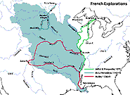 This map displays French explorations of the Louisiana Territory, 1672-1743. During the 1600s French explorers came down the St. Lawrence River, through the Great Lakes, and down the Mississippi River to the Gulf of Mexico. The French founded New Orleans, the vital port at the mouth of the Mississippi River, in 1718. |