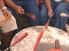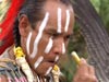In addition to the song and dance, July-amsh hosts one of the largest Indian art exhibits and auctions in the region. In this clip you can also listen as Ward Stout explains the significance and demonstrates the use of the Indian Flute. Cliff SiJohn is the auctioneer. *(512K Viewing Option) Part 7 |