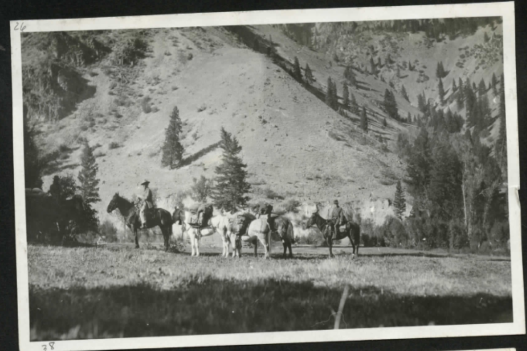 These photographs look south from Taylor Wilderness Research Station to the Cliff Creek drainage and bighorn sheep lambing cliffs. Big Creek runs across the bottom of the photo where the conifers and riparian trees and shrubs grow along its banks. In the early 20th century, Taylor Wilderness Research Station was a property owned by Dave Lewis, also known as Cougar Dave. Dave Lewis is a prominent figure in the settler history of the Big Creek drainage. He came into the Big Creek drainage as a cavalryman during the 1879 Sheepeater Campaign, and returned the next year to claim the 65-acre homestead that became Taylor Wilderness Research Station. Dave Lewis worked for the Forest Service for a time, gaining a reputation for hunting and killing mountain lions and other predatory game, hence the moniker “Cougar Dave”.
