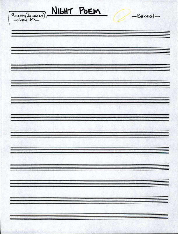 - "Night Poem", Professor Daniel Bukvich Composition Collection, Digital Initiatives, University of Idaho Library