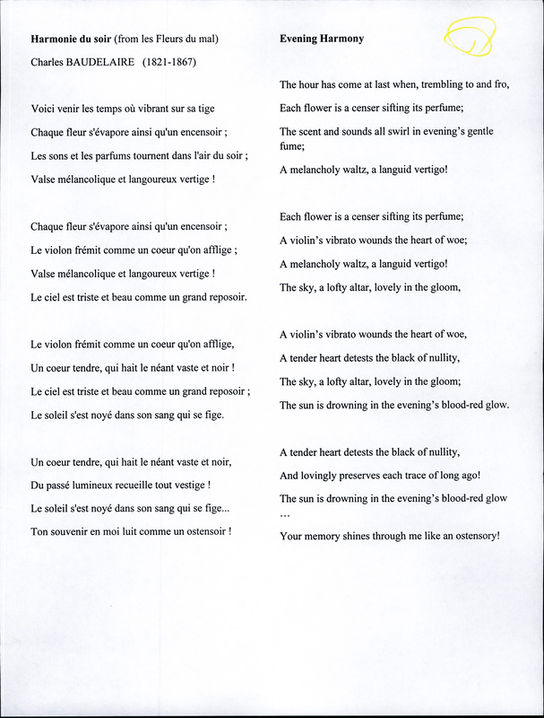 - "Harmonie du soir", Professor Daniel Bukvich Composition Collection, Digital Initiatives, University of Idaho Library