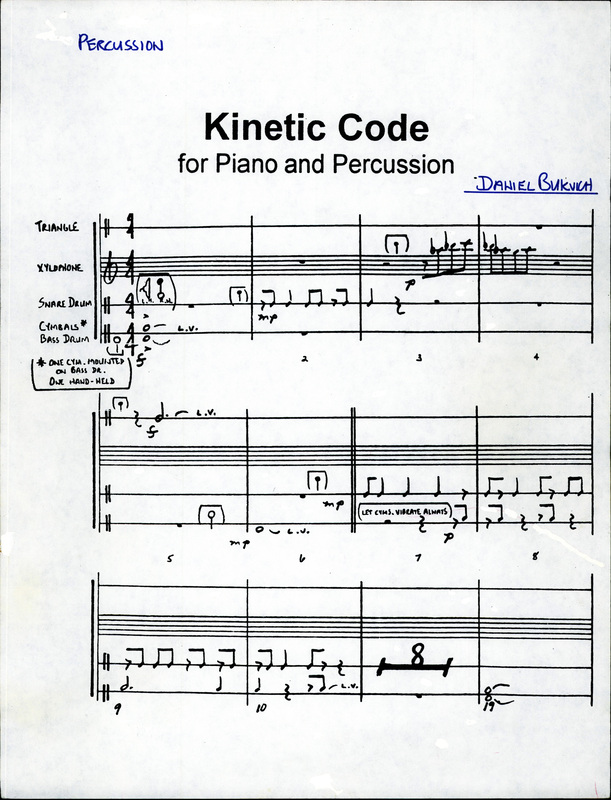 - "Kinetic Code", Professor Daniel Bukvich Composition Collection, Digital Initiatives, University of Idaho Library