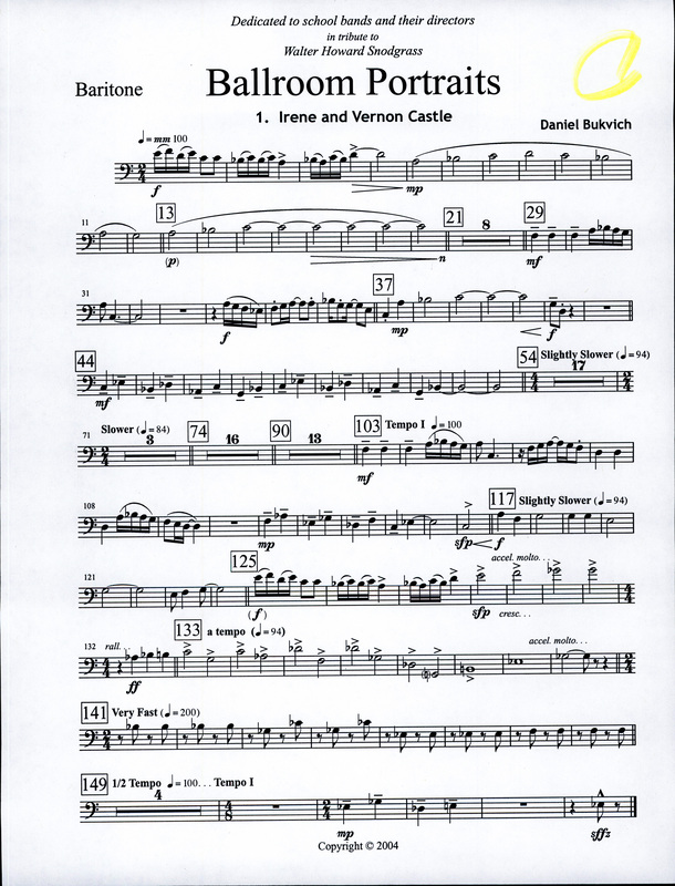 - Comissioned by family of a long time Idaho music educator, Walter Howard Snodgrass. Based on song Snodgrass wrote for his wife in the style of Amercan Song Writer, Robert Russell Bennet. The names of the movements are titled after the inventors of the following dances: The Castle Walk, Fox's Trot, The Charleston, The Motion Picture Waltz, and The Lindy Hop.