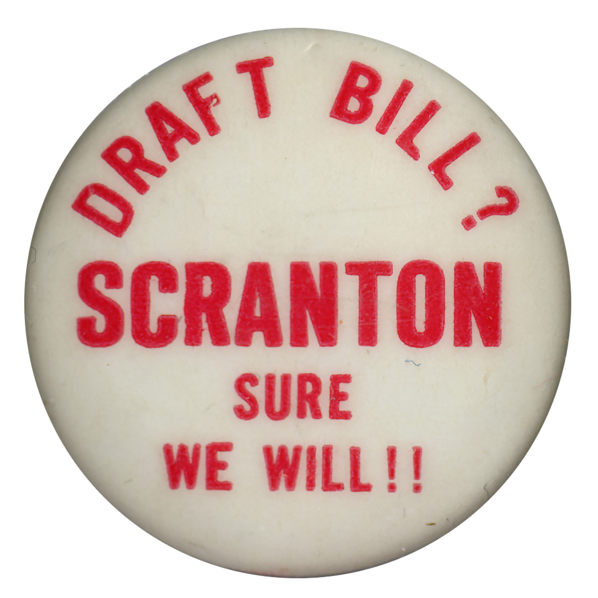 - "Draft Bill? Scranton Sure We Will!!", Political Buttons Collection, University of Idaho Library Digital Collections, https://www.lib.uidaho.edu/digital/buttons/items/mg660_box1_9-0442.html