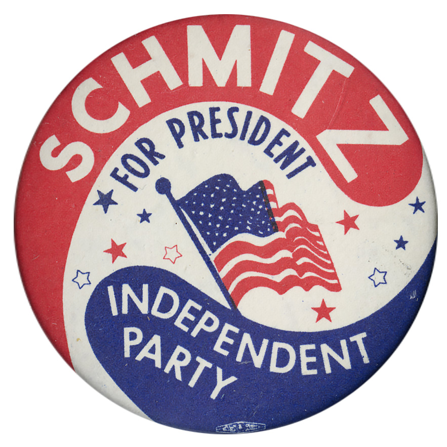- "Schmitz For President Independent Party", Political Buttons Collection, University of Idaho Library Digital Collections, https://www.lib.uidaho.edu/digital/buttons/items/mg660_box2_5_0661.html