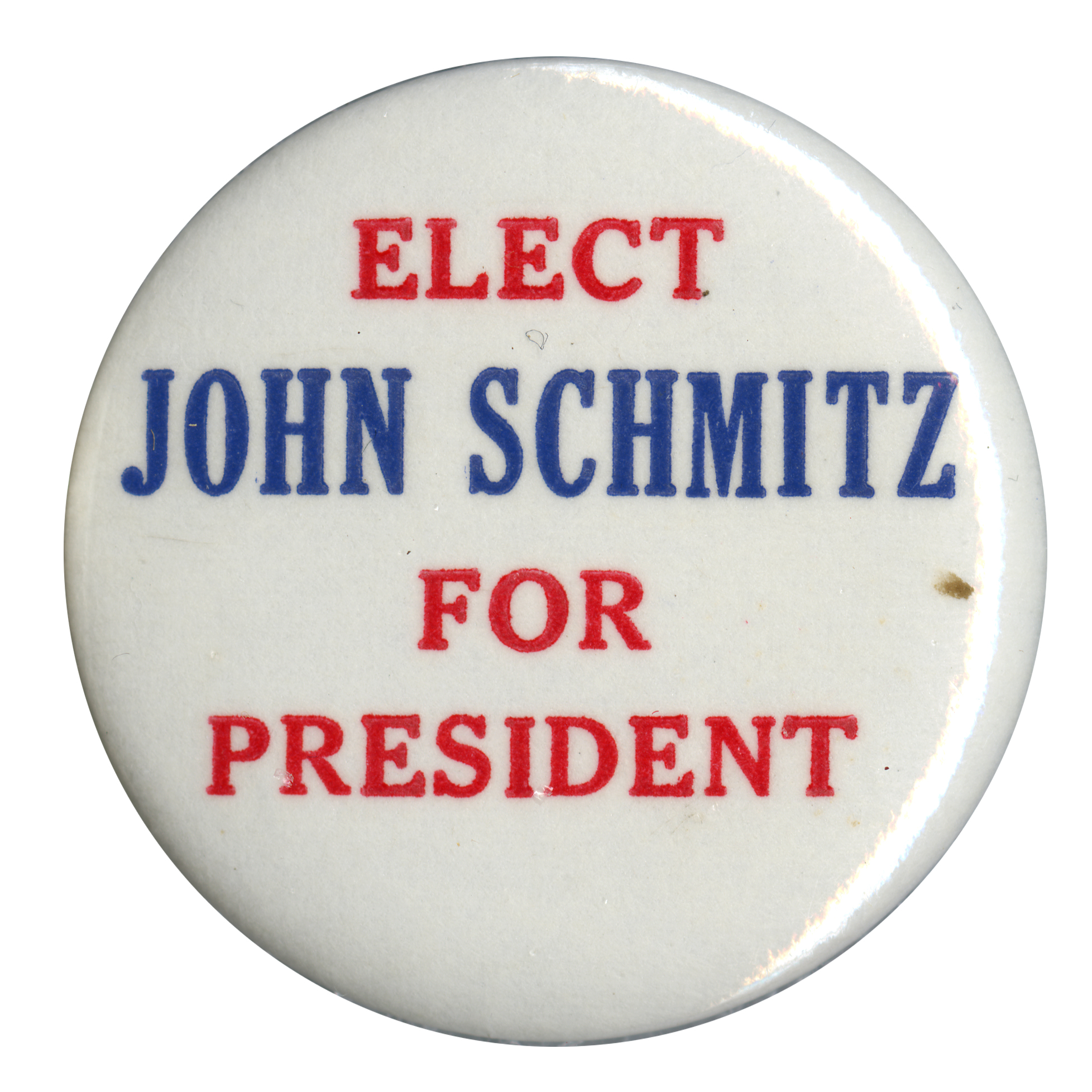 - "Elect John Schmitz for President", Political Buttons Collection, University of Idaho Library Digital Collections, https://www.lib.uidaho.edu/digital/buttons/items/mg660_box2_5_0662.html