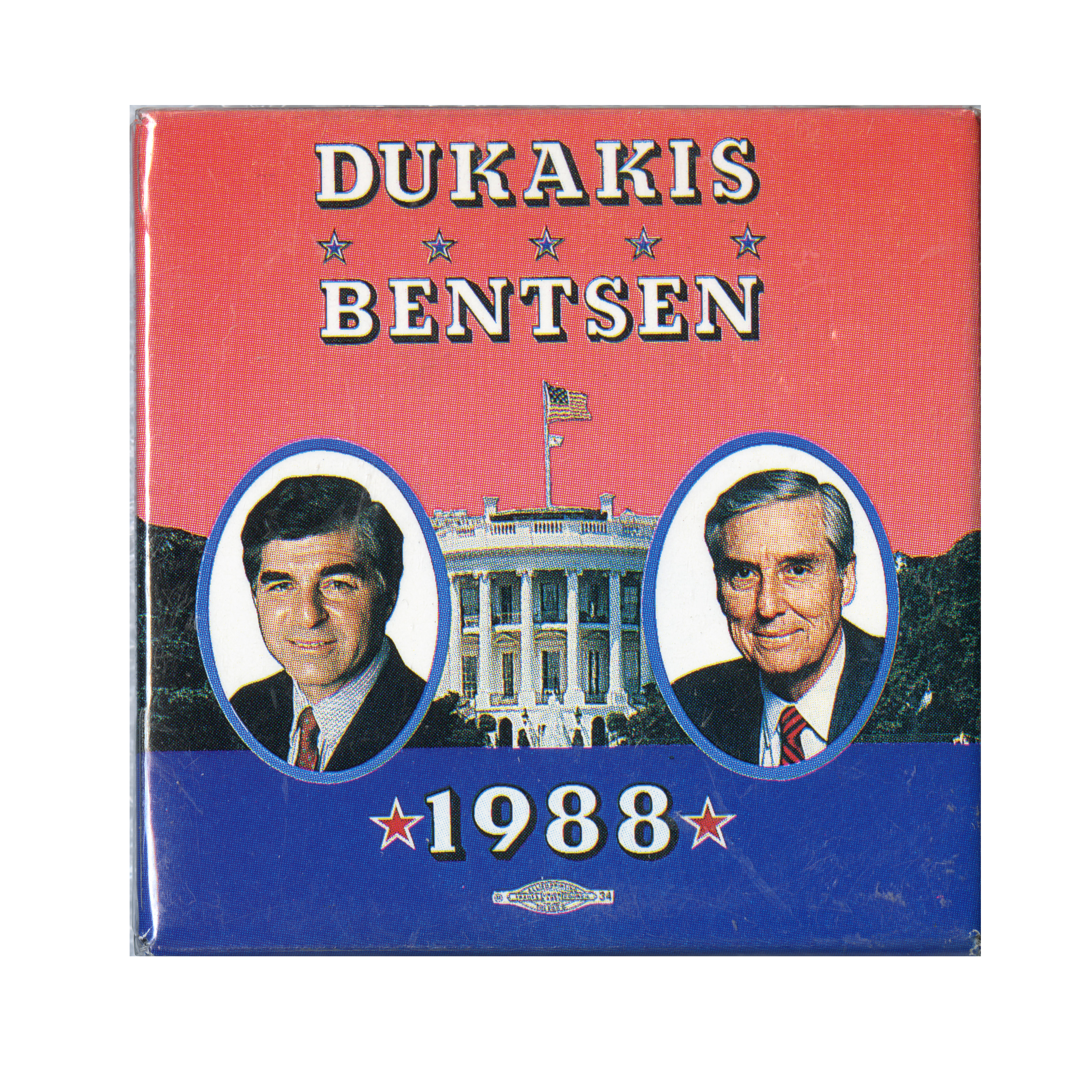 - "Dukakis Bentsen 1988", Political Buttons Collection, University of Idaho Library Digital Collections, https://www.lib.uidaho.edu/digital/buttons/items/mg660_box3_13_1224.html