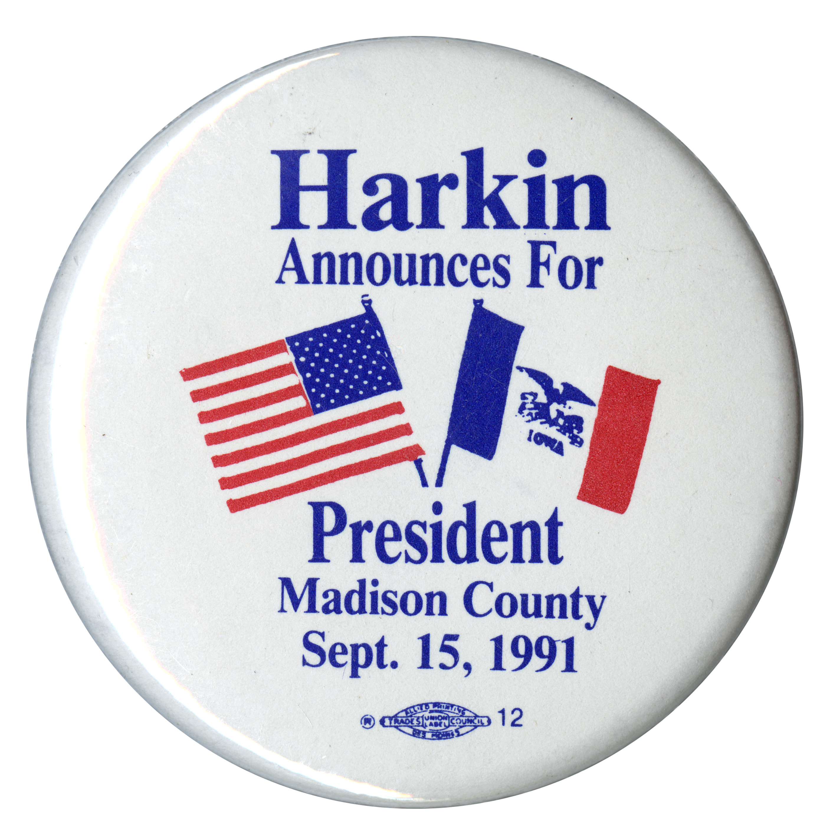 - "Harkin Announces For President Madison County Sept. 15, 1991", Political Buttons Collection, University of Idaho Library Digital Collections, https://www.lib.uidaho.edu/digital/buttons/items/mg660_box3_15_1265.html