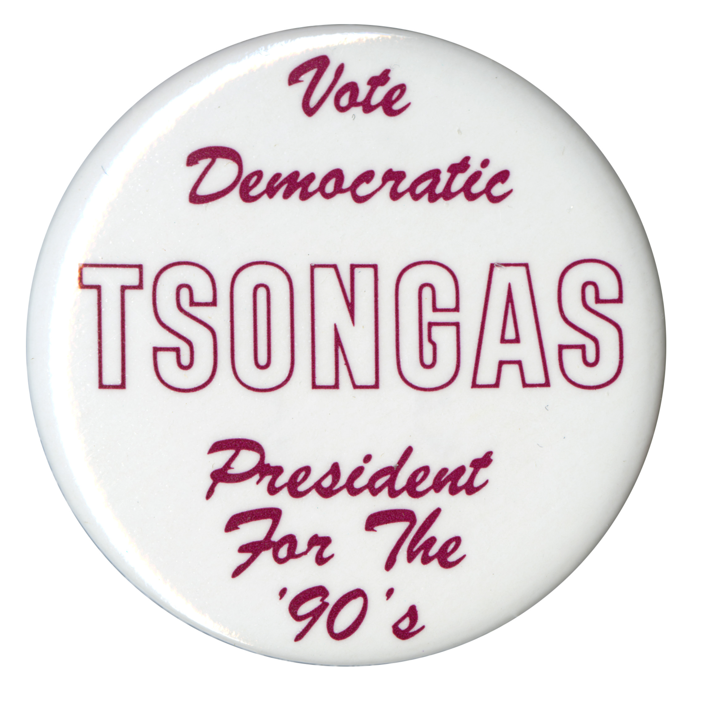 - "Vote Democratic Tsongas President For the '90's", Political Buttons Collection, University of Idaho Library Digital Collections, https://www.lib.uidaho.edu/digital/buttons/items/mg660_box3_16_1313.html