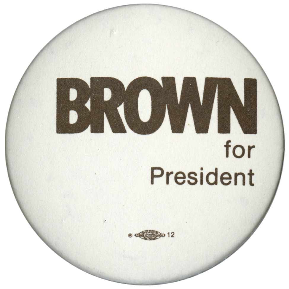 - "Brown for President", Political Buttons Collection, University of Idaho Library Digital Collections, https://www.lib.uidaho.edu/digital/buttons/items/mg660_box3_17_1321.html