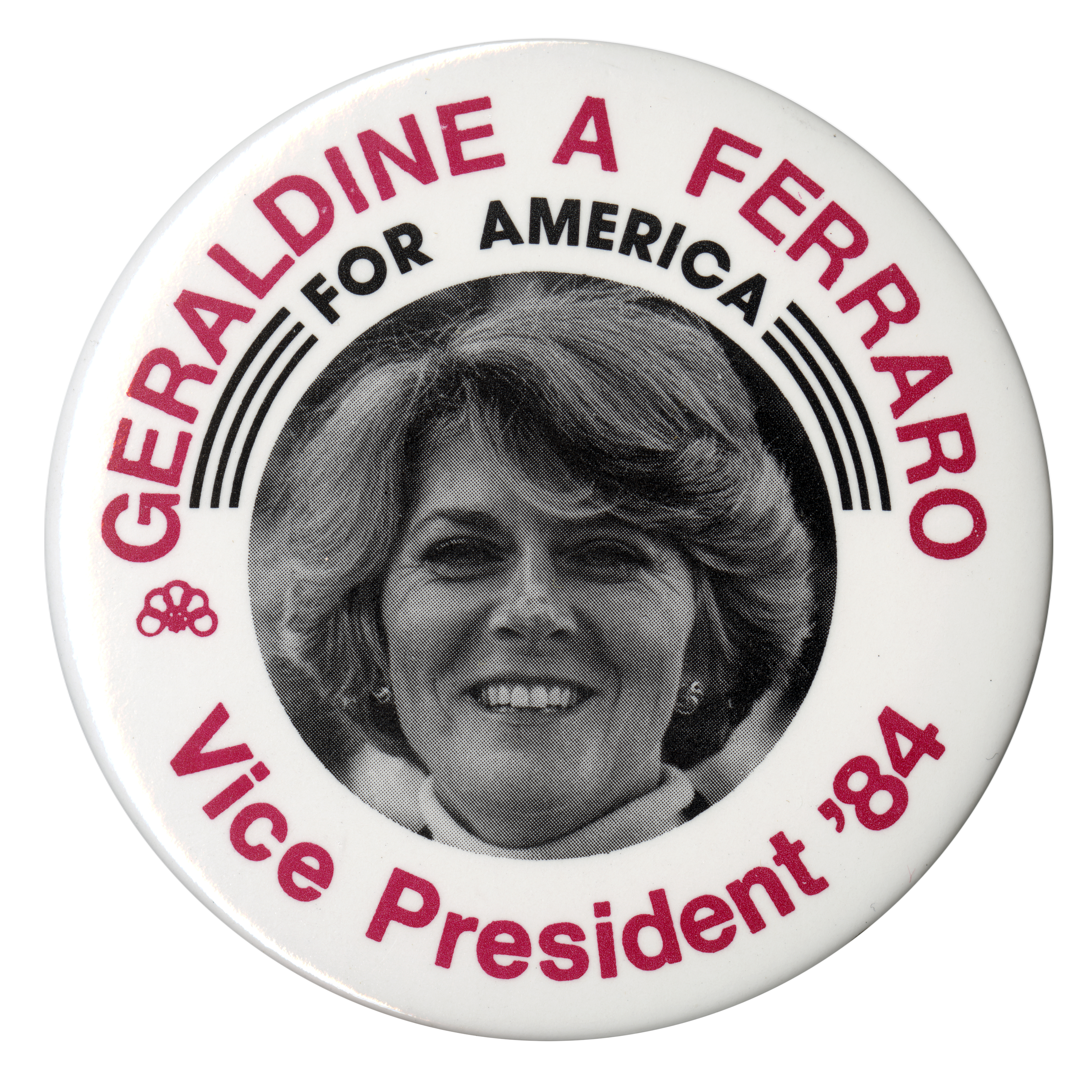 - "Geraldine A. Ferraro for America Vice President '84", Political Buttons Collection, University of Idaho Library Digital Collections, https://www.lib.uidaho.edu/digital/buttons/items/mg660_box3_6_1089.html