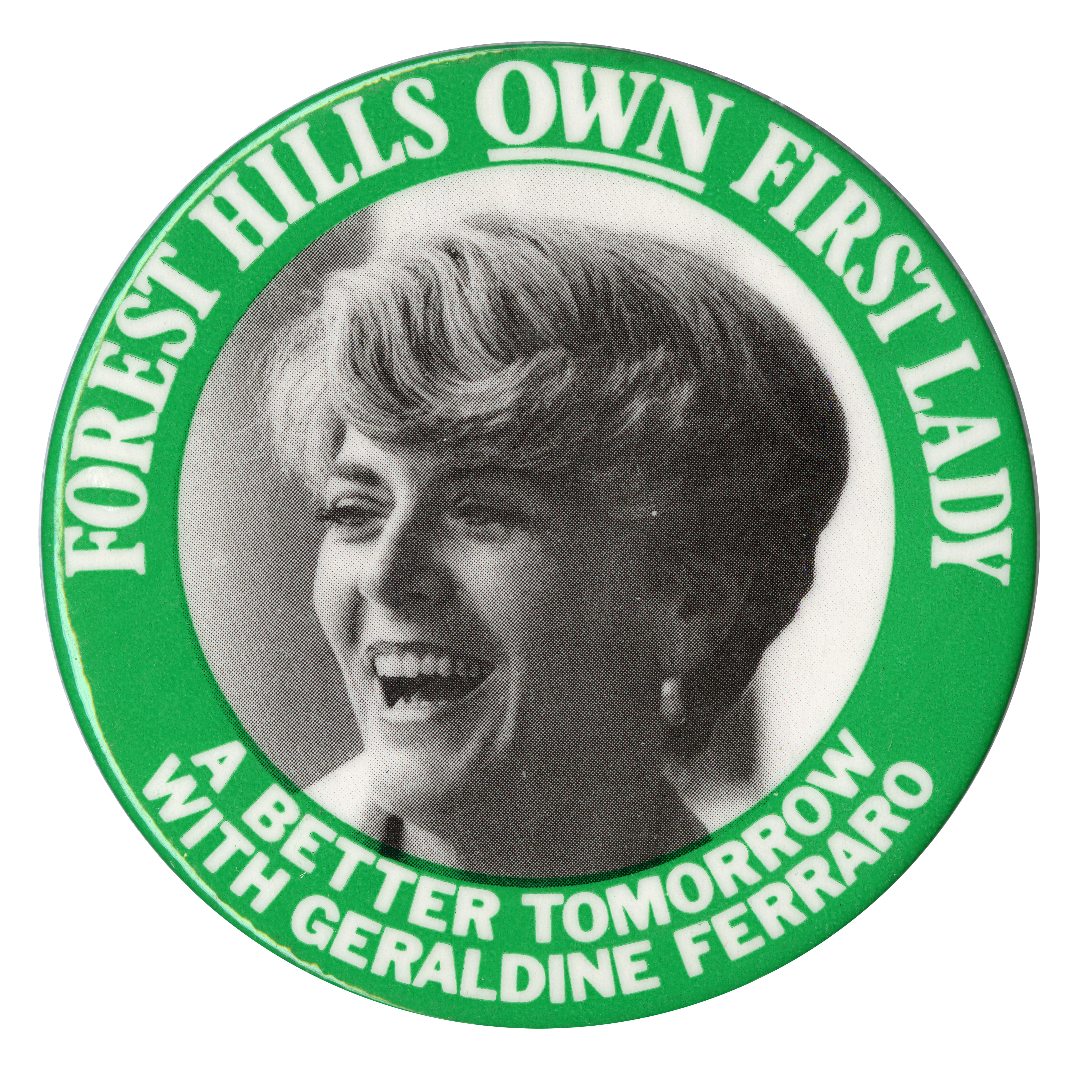- "Forest Hills Own First Lady A Better Tomorrow With Geraldine Ferraro", Political Buttons Collection, University of Idaho Library Digital Collections, https://www.lib.uidaho.edu/digital/buttons/items/mg660_box3_6_1093.html
