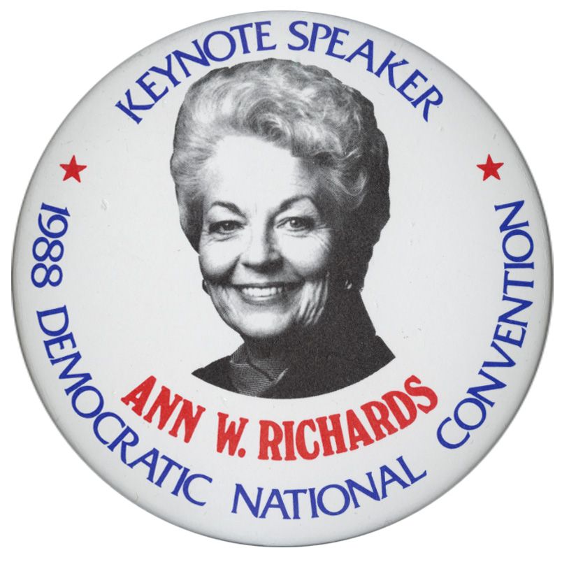- "Keynote Speaker Ann W. Richards 1988 Democratic National Convention", Political Buttons Collection, University of Idaho Library Digital Collections, https://www.lib.uidaho.edu/digital/buttons/items/mg660_box3_9_1141.html