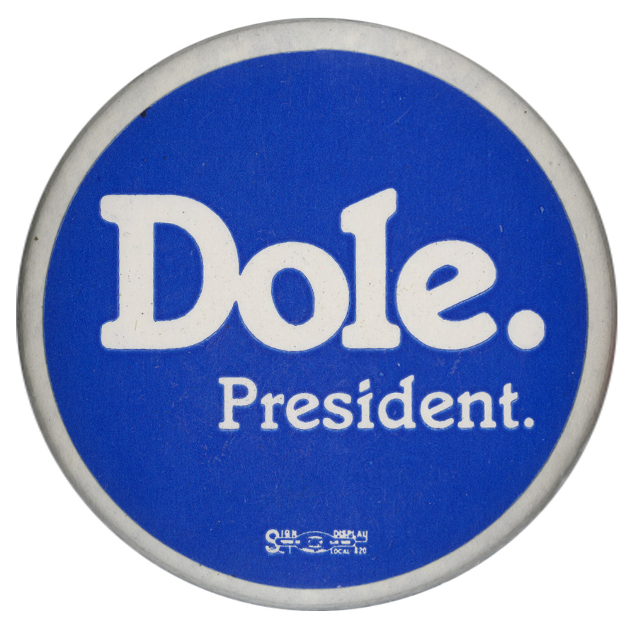 - "Dole. President.", Political Buttons Collection, University of Idaho Library Digital Collections, https://www.lib.uidaho.edu/digital/buttons/items/mg660_box4_11_1564.html