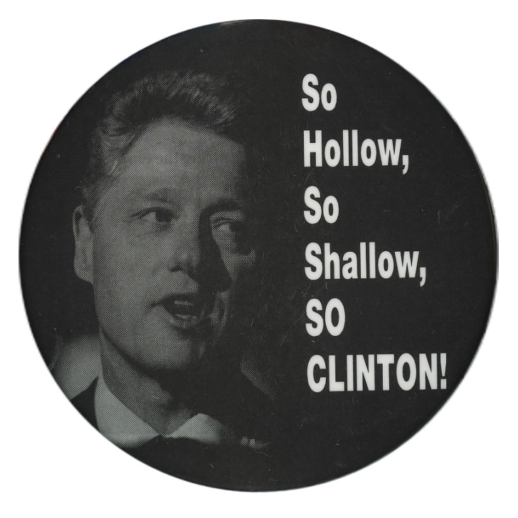 - "So Hollow, So Shallow, So Clinton!", Political Buttons Collection, University of Idaho Library Digital Collections, https://www.lib.uidaho.edu/digital/buttons/items/mg660_box4_13_1598.html