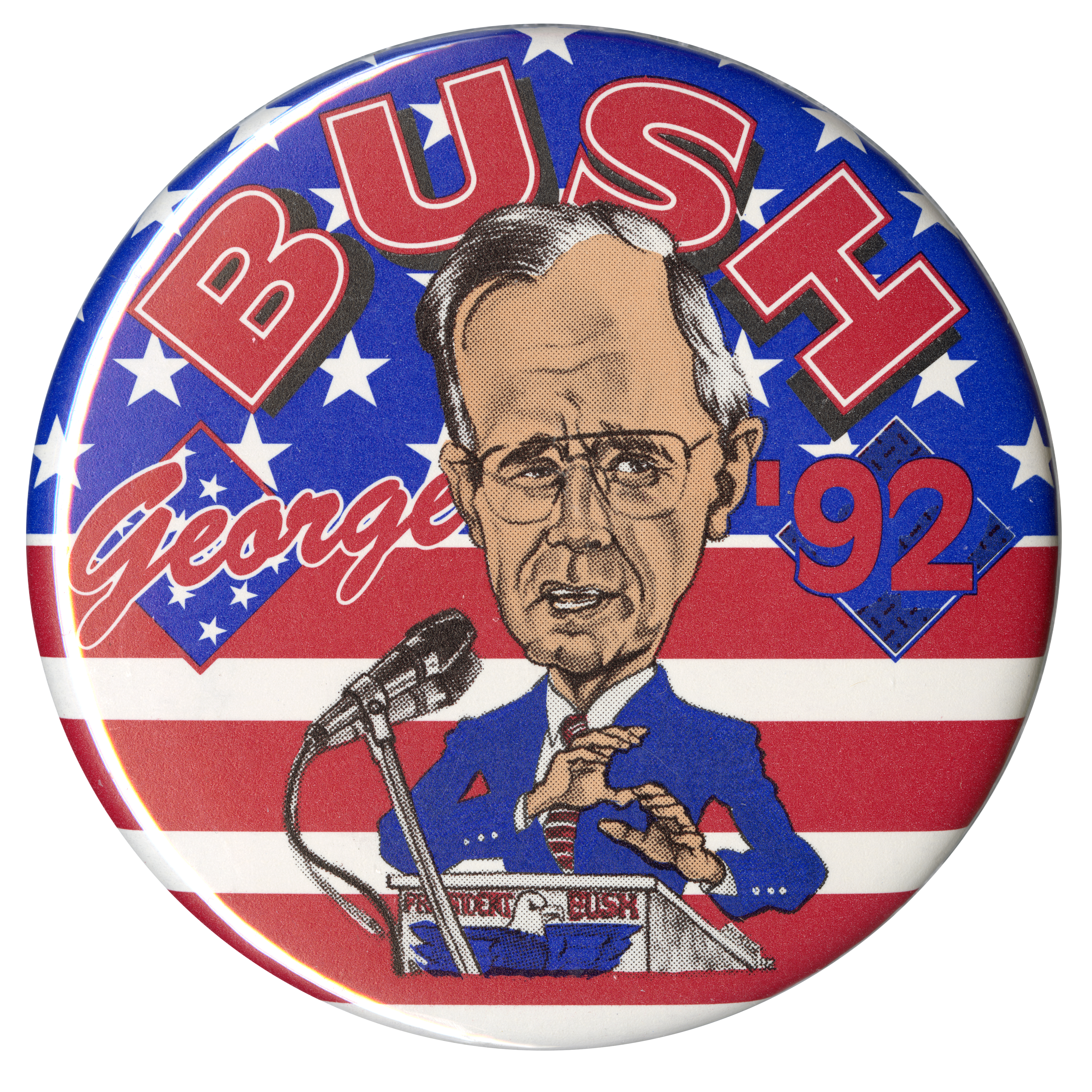 - "Bush George '92", Political Buttons Collection, University of Idaho Library Digital Collections, https://www.lib.uidaho.edu/digital/buttons/items/mg660_box4_1_1364.html