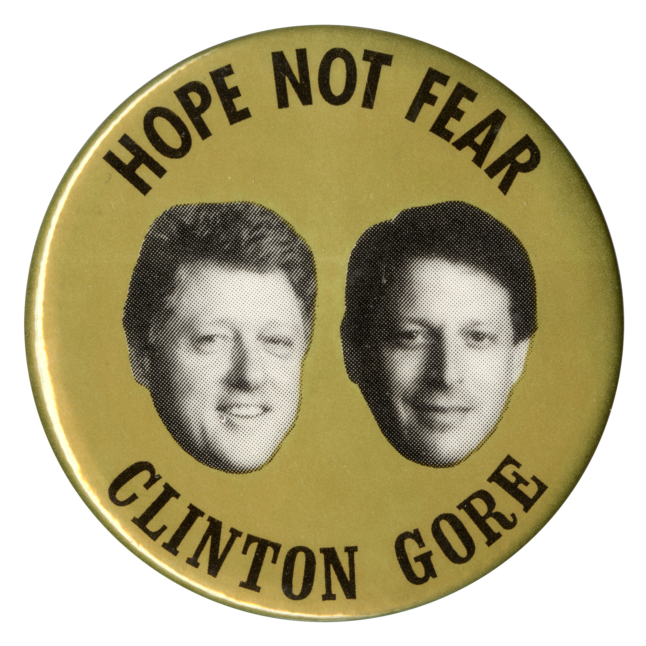 - "Hope Not Fear Clinton Gore", Political Buttons Collection, University of Idaho Library Digital Collections, https://www.lib.uidaho.edu/digital/buttons/items/mg660_box4_3_1407.html