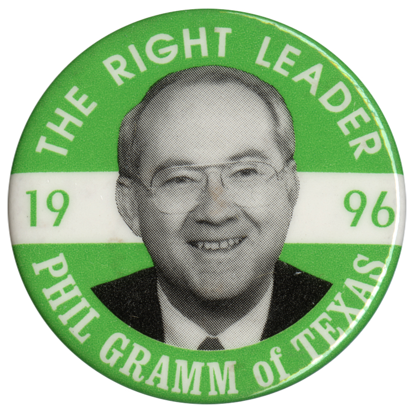 - "The Right Leader Phil Gramm of Texas 1996", Political Buttons Collection, University of Idaho Library Digital Collections, https://www.lib.uidaho.edu/digital/buttons/items/mg660_box4_8_1503.html