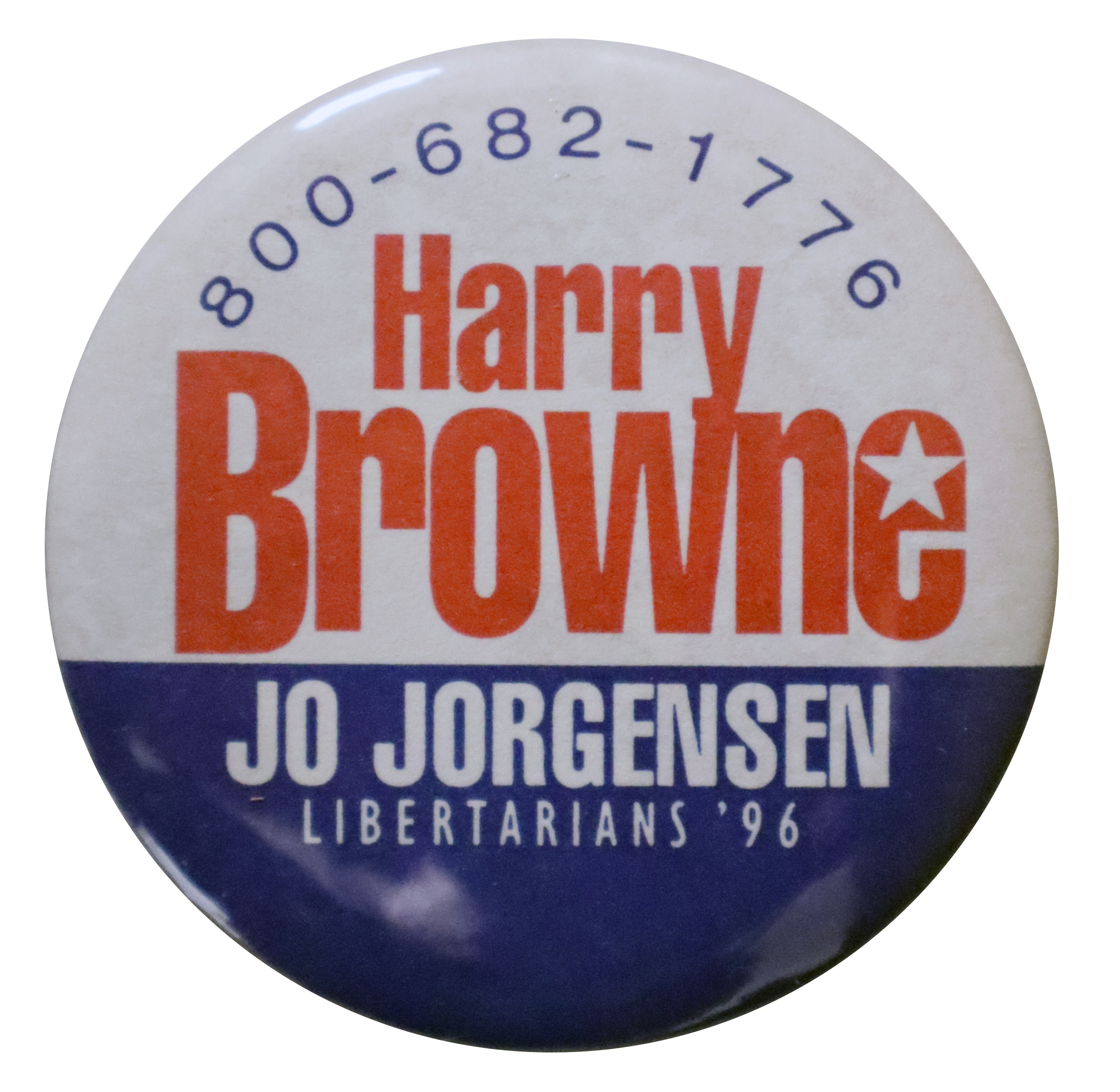 - "800-682-1776 Harry Browne Jo Jorgensen Libertarian '96", Political Buttons Collection, University of Idaho Library Digital Collections, https://www.lib.uidaho.edu/digital/buttons/items/mg660_box4_9_1525.html