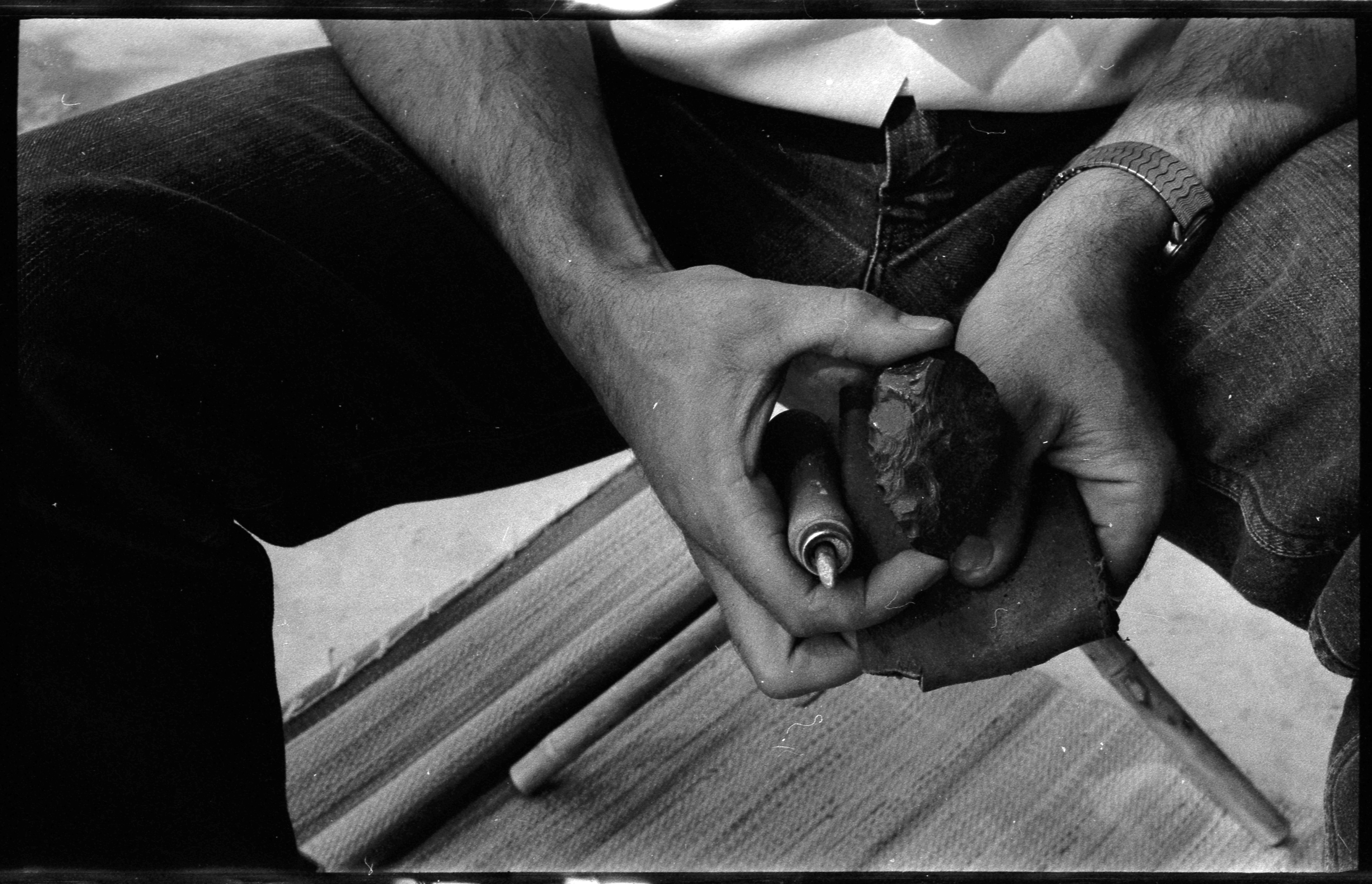 - "A pair of hands, holding a flintknapped piece and flintknapping tools", Donald E. Crabtree Lithic Technology Collection, University of Idaho Library Digital Collections, https://www.lib.uidaho.edu/digital/crabtree/items/ce_b83_f2-item1-004.html