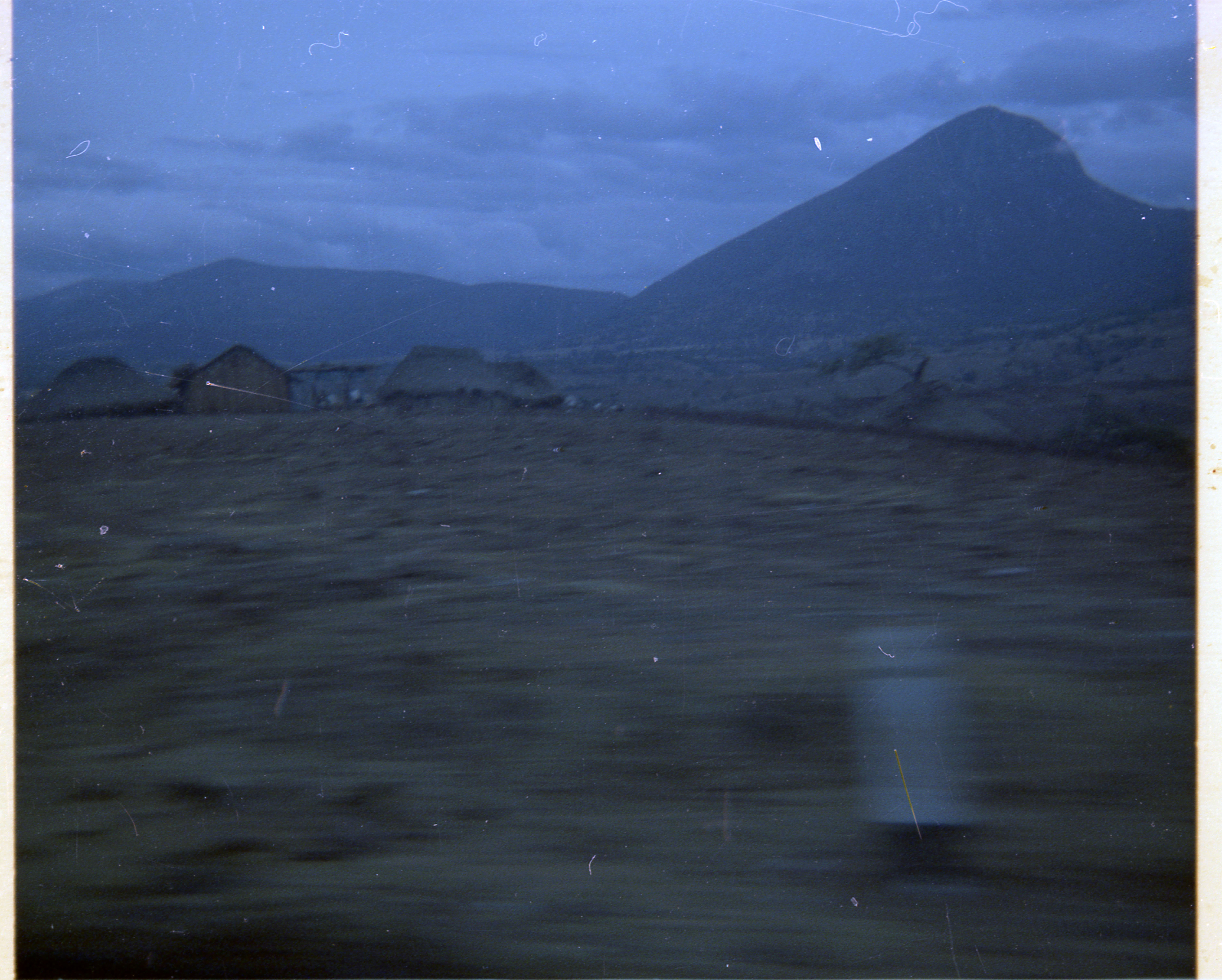 - A photograph of a landscape with houses. A moutain is visible in the distance.