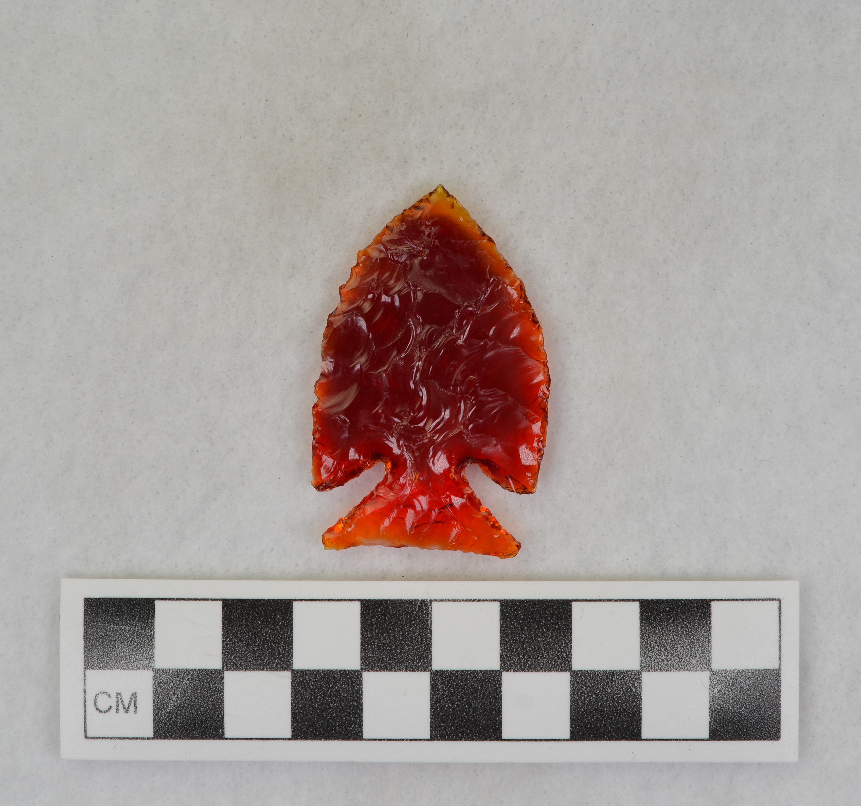 - A corner notched, biface created from glass of a broken tail light lens. (JW)