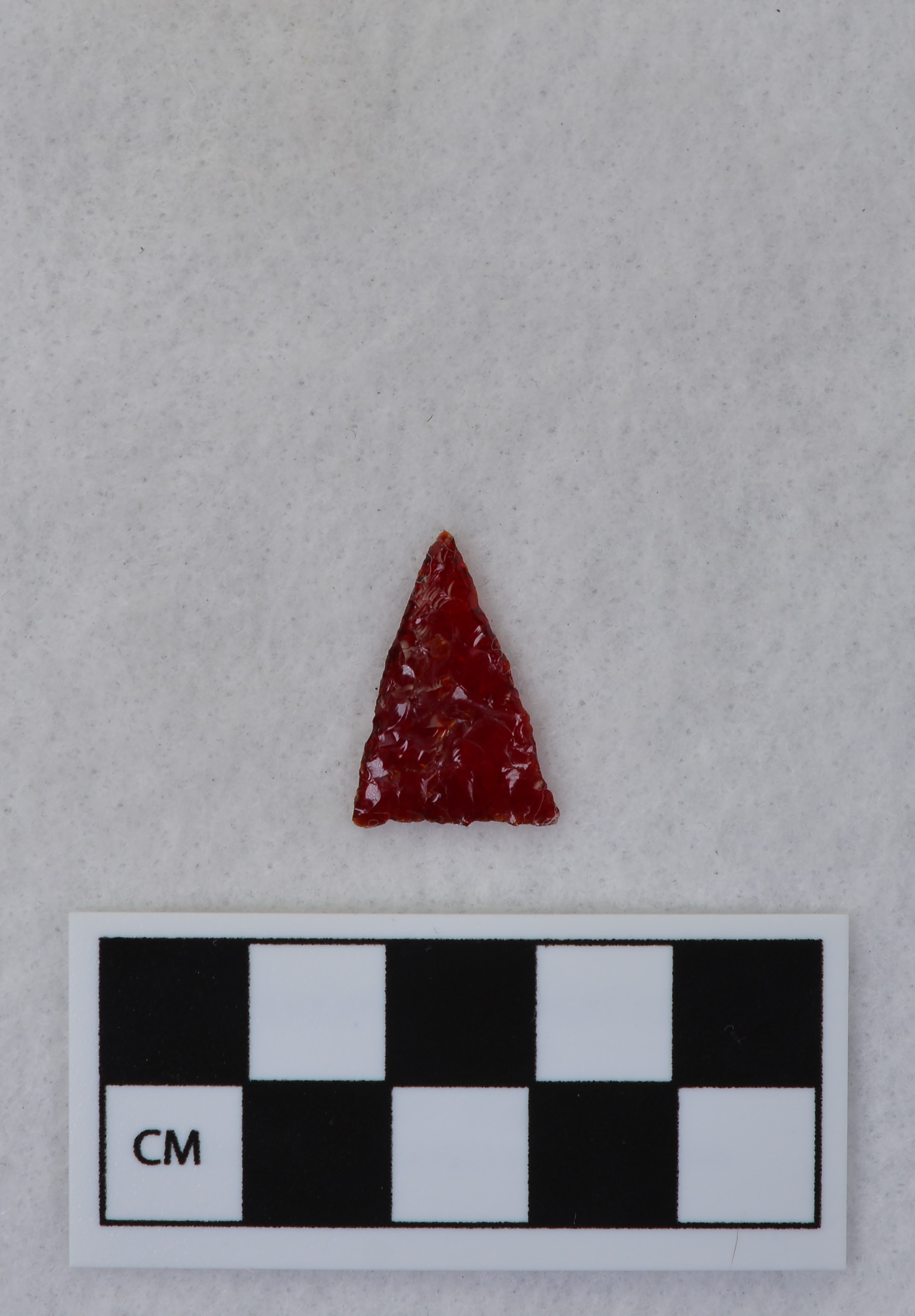 - A triangular point created by Donald E. Crabtree from the glass of a red tail light lens. (JW)