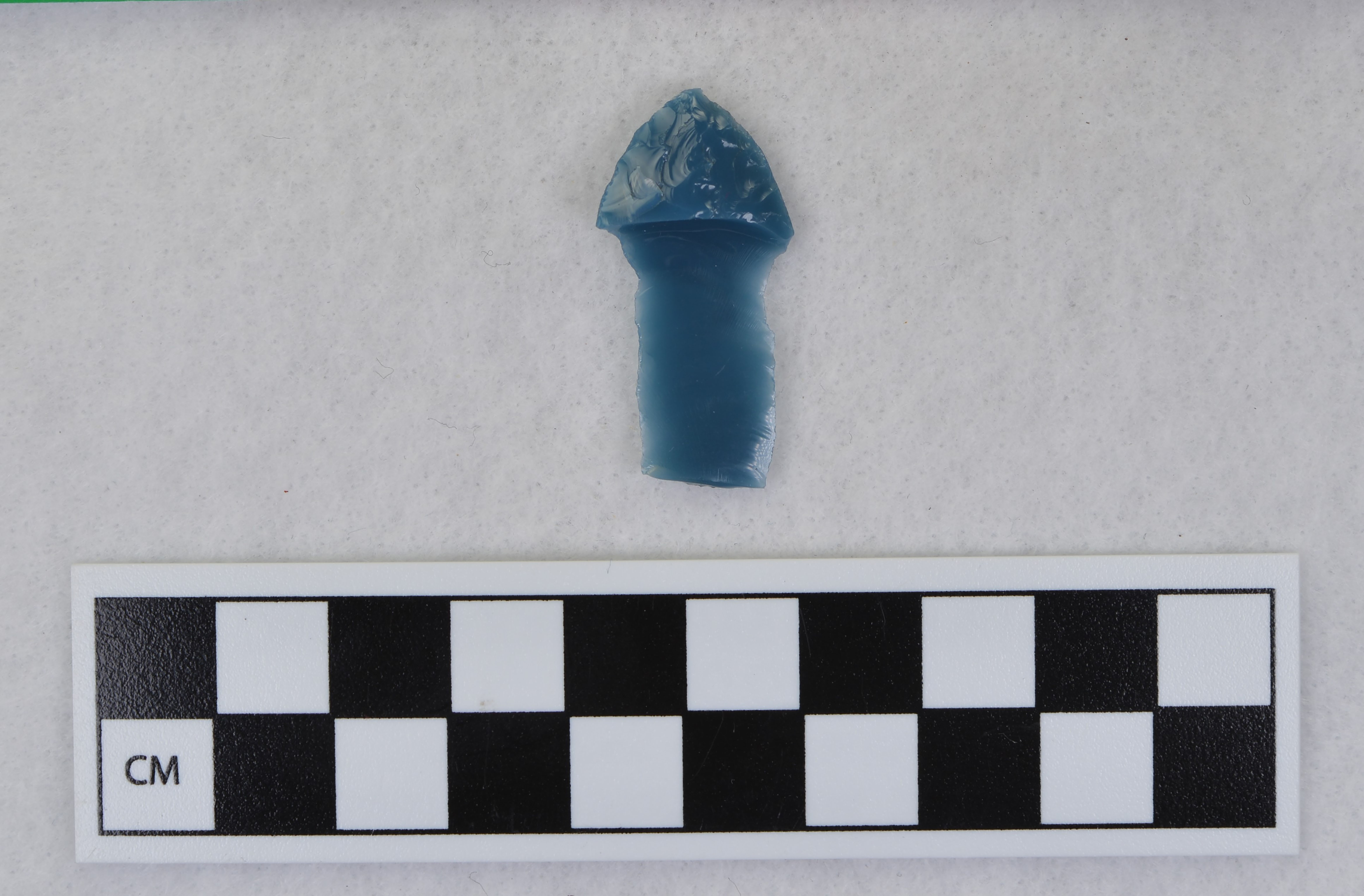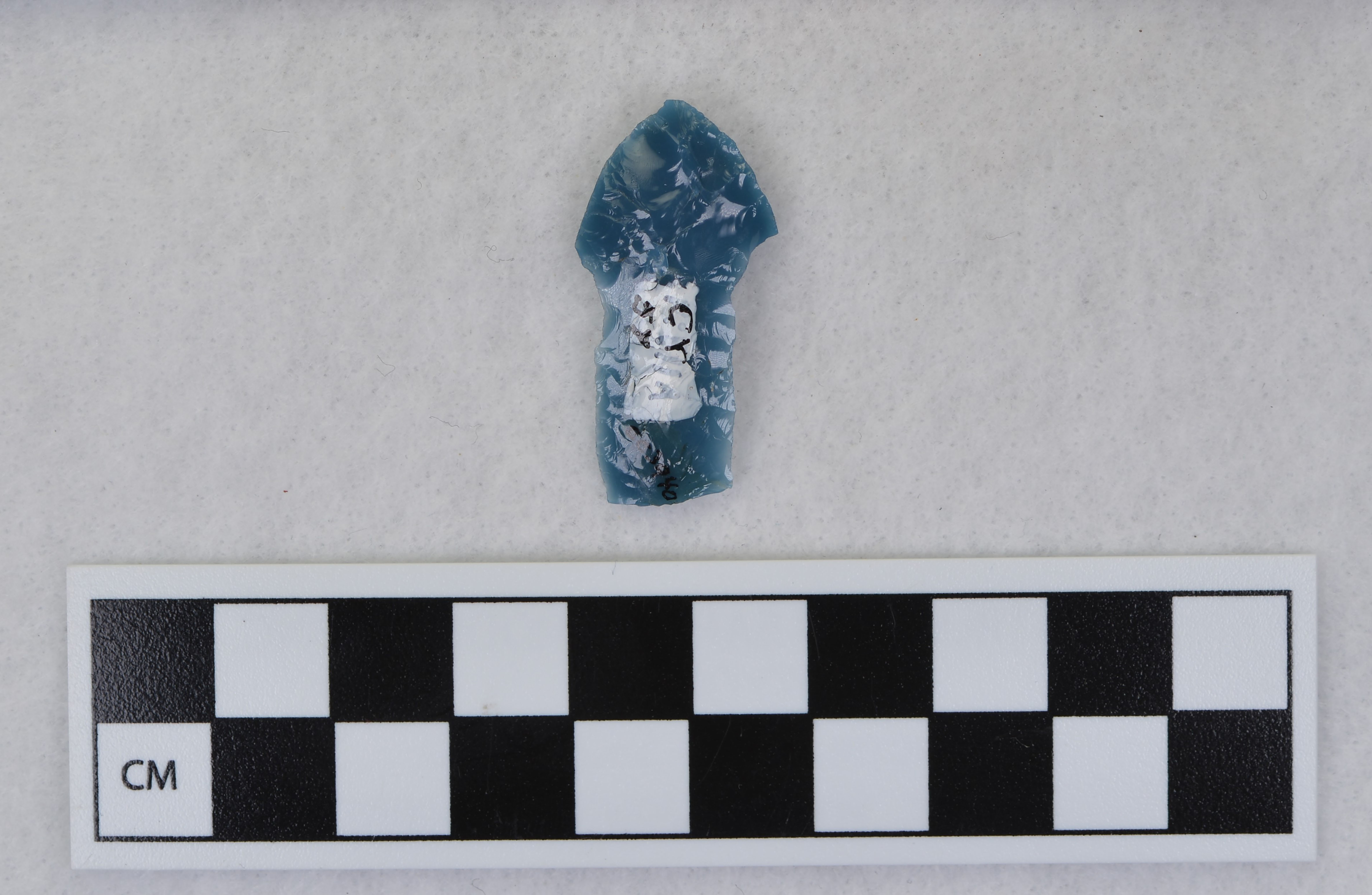 - Proximal fragment, Folsom, distal end snipped off. Due to non-support of tip when second channel flake removed. (GT)Mends with Ce.3940.