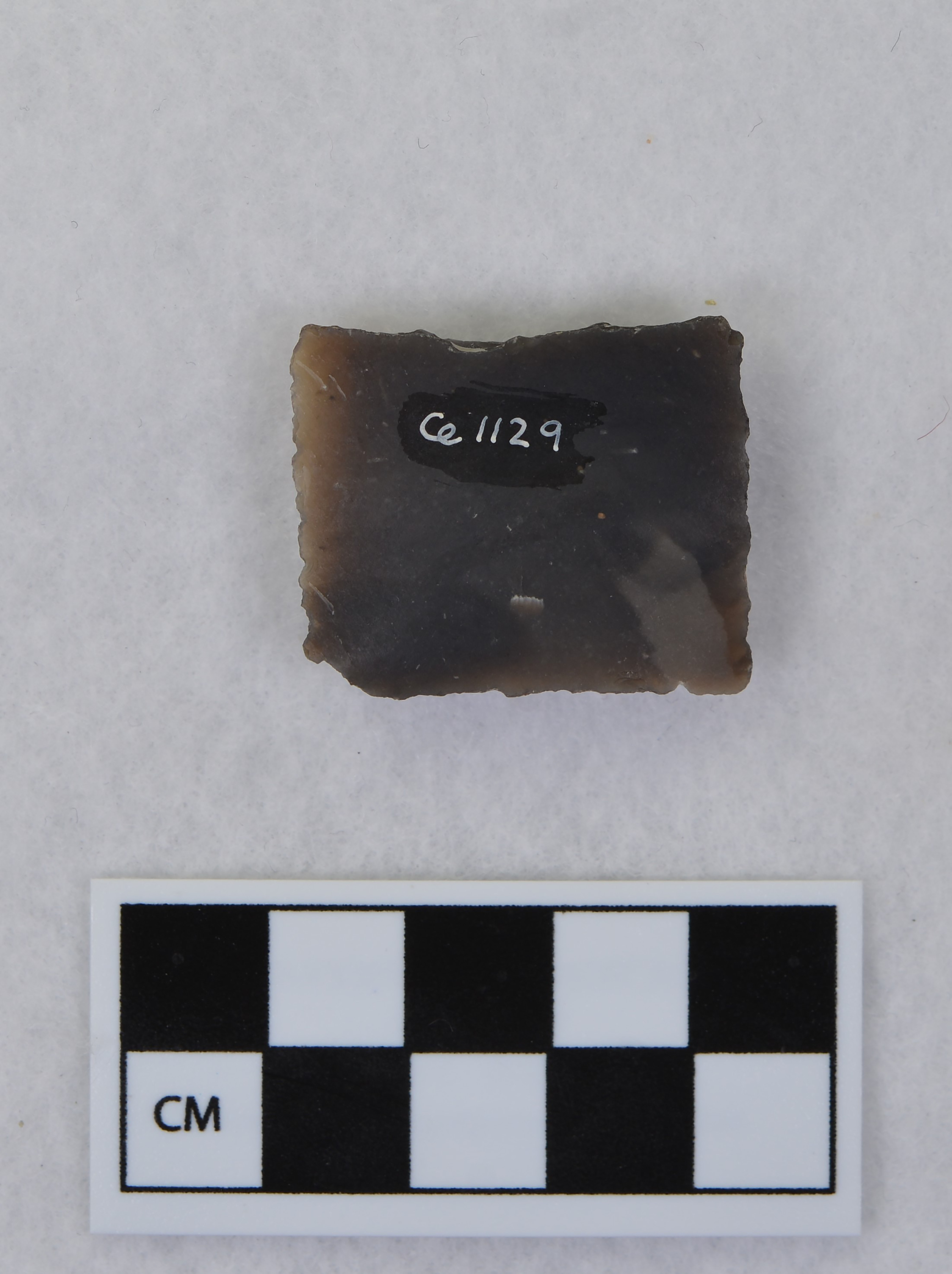 - English gunflint, it is unclear from the notes if this and associated pieces were made by Donald E. Crabtree or collected by him. Ce.1126 - Ce.1130 are associated with Ce.1119.
