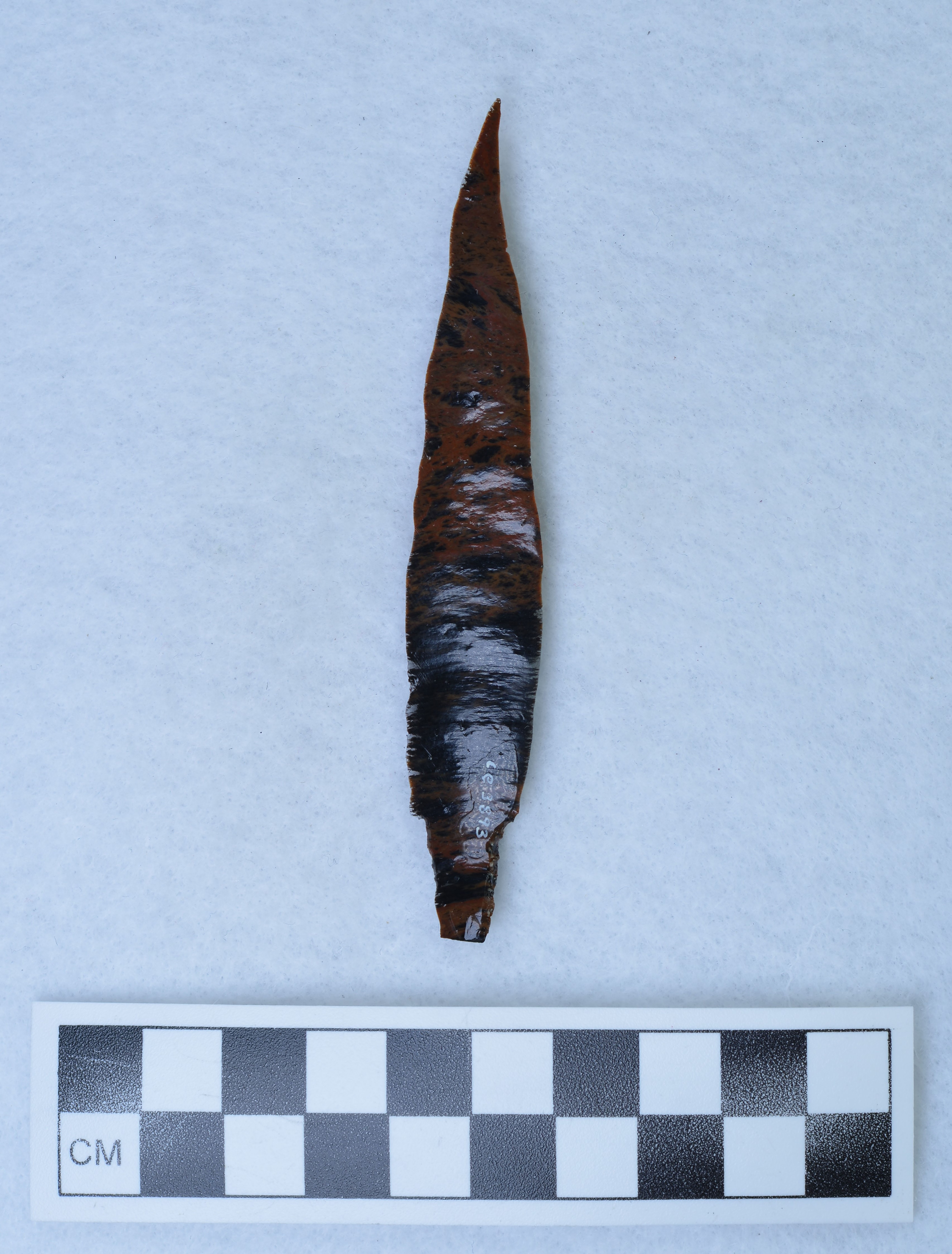- Unretouched percussion blade, stemmed for hafting