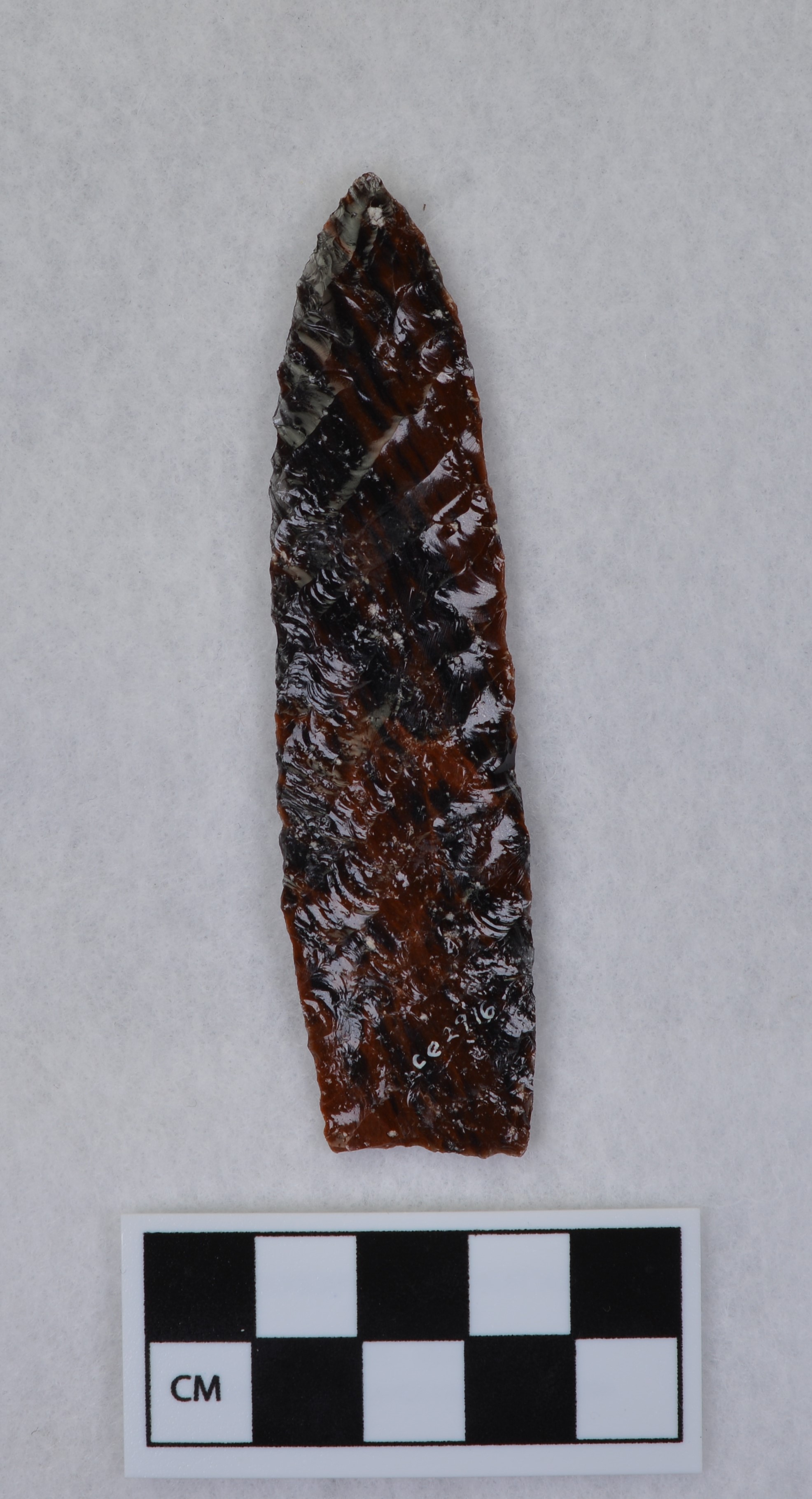 - Parallel diagonal flaking one face, lanceolate style, edges slightly ground