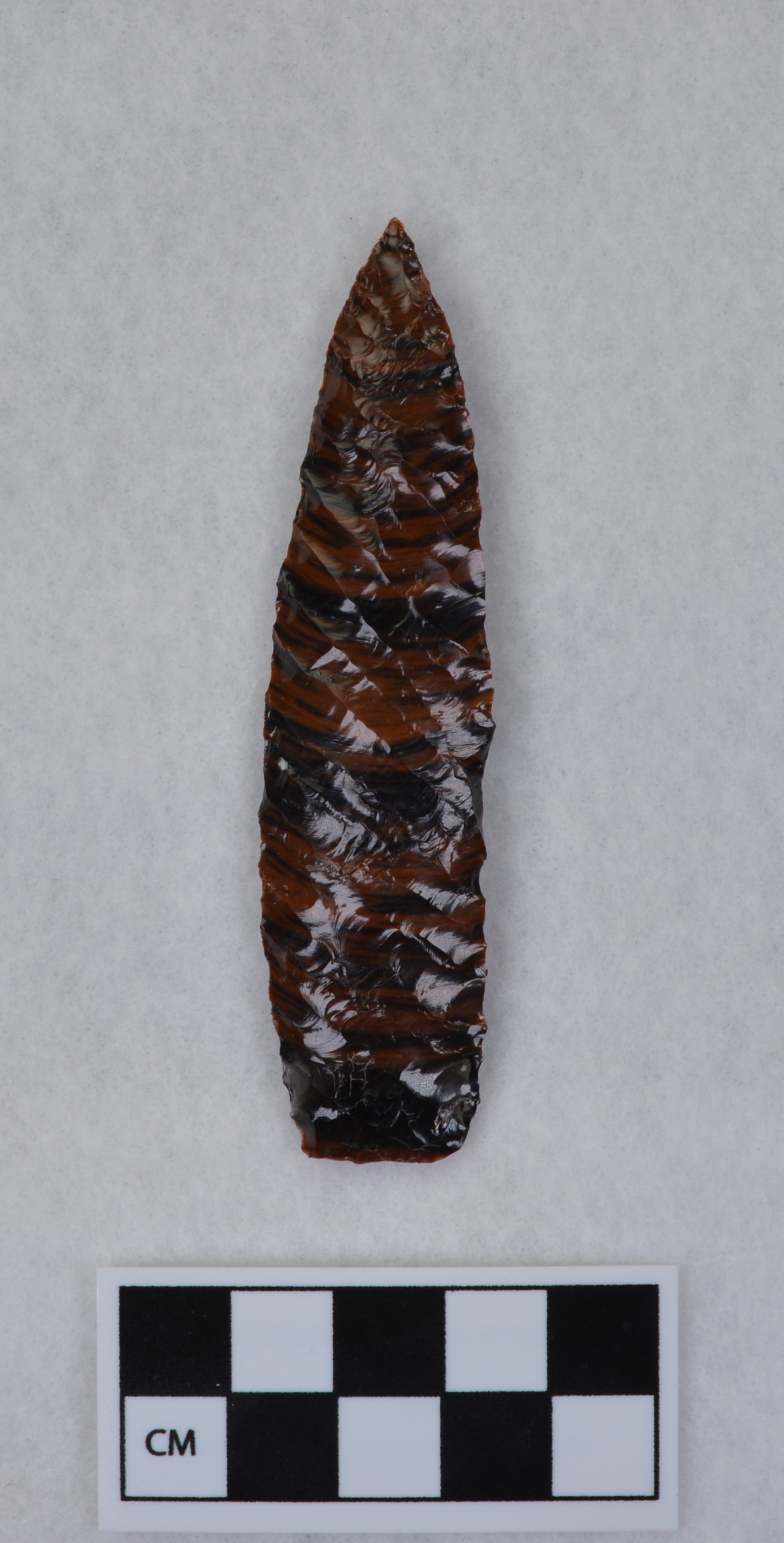 - Lanceolate style point. Flakes run full length of face. (JW) Signed by Crabtree.