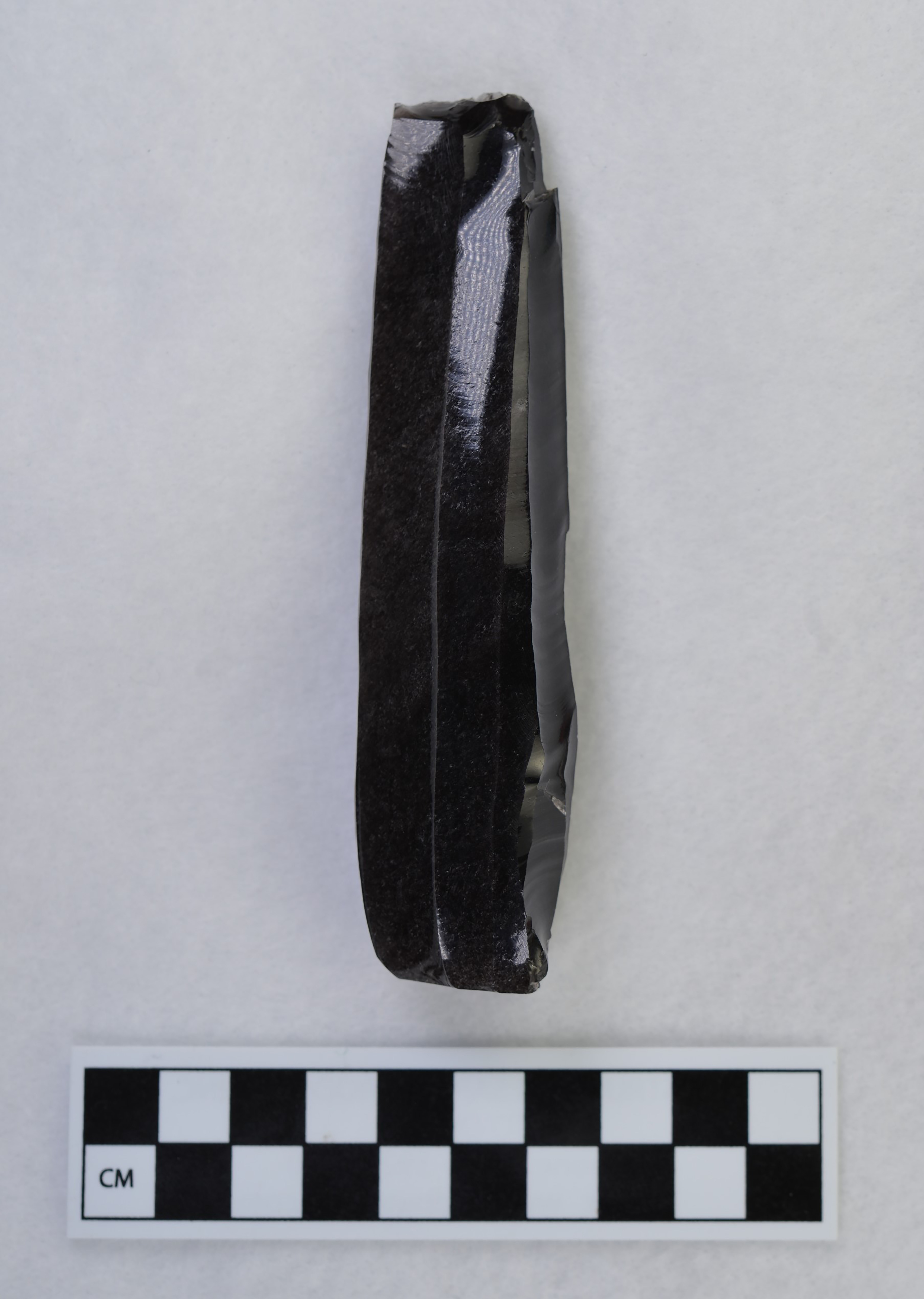 - Pressure, polyhedral, Mesoamerican. Platform area at proximal end completely used up. Two blades stepped off very near proximal end. Core either dropped on distal end and flake removed or removed intentionally. Made from sawed core. (GT)