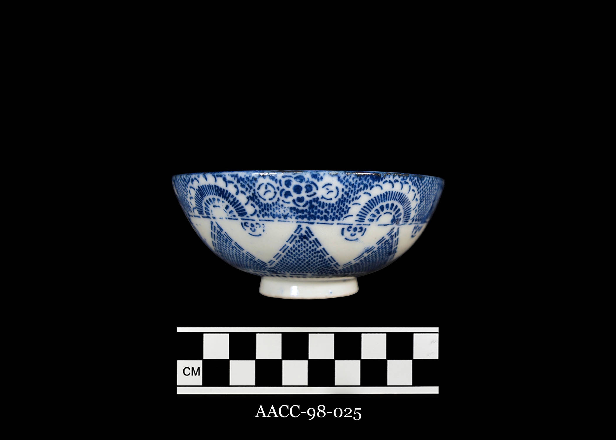 Side of Sometsuke Katagami Sho Chiku Bai Kobachi (small bowl with cobalt stenciled three friends design)