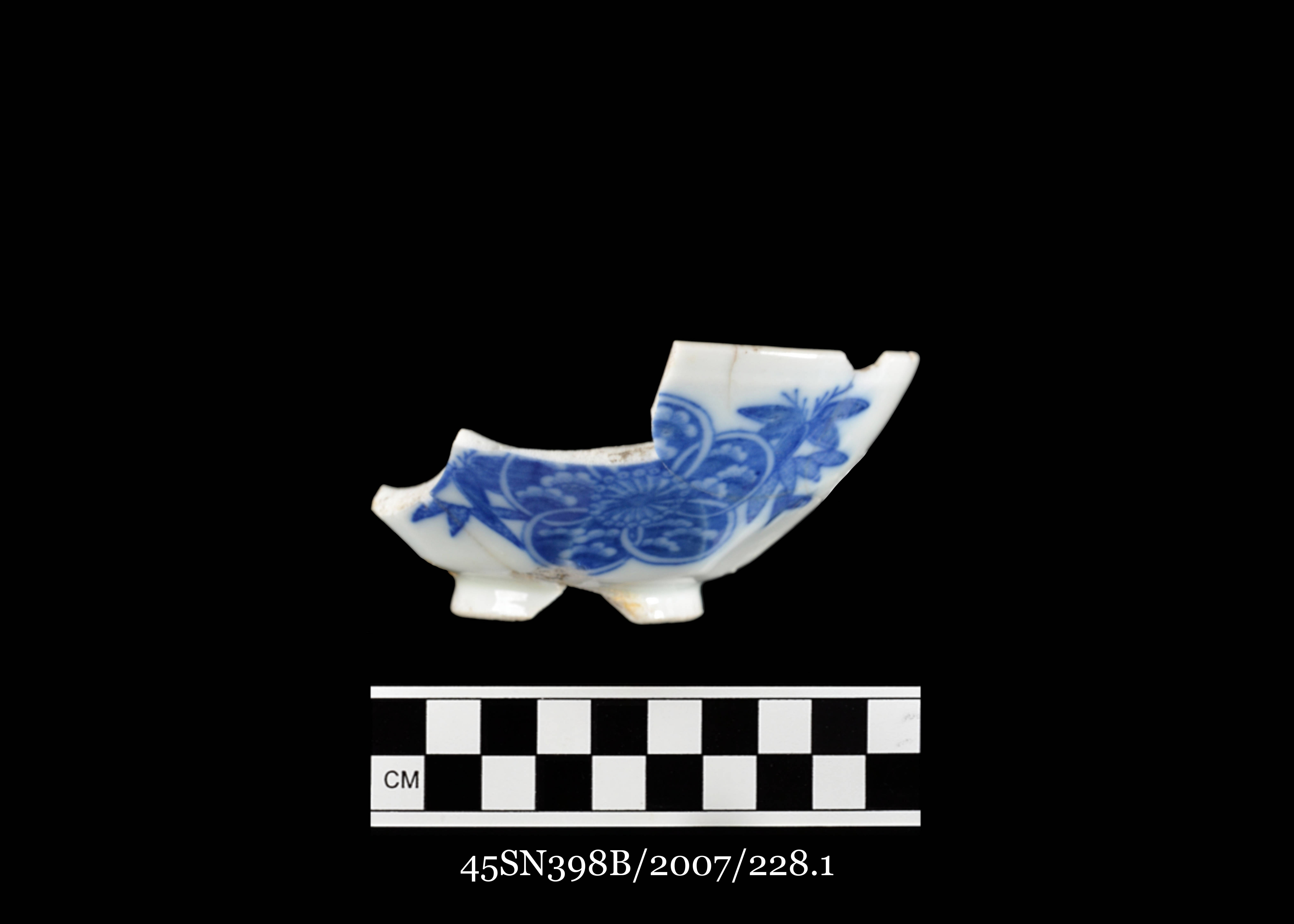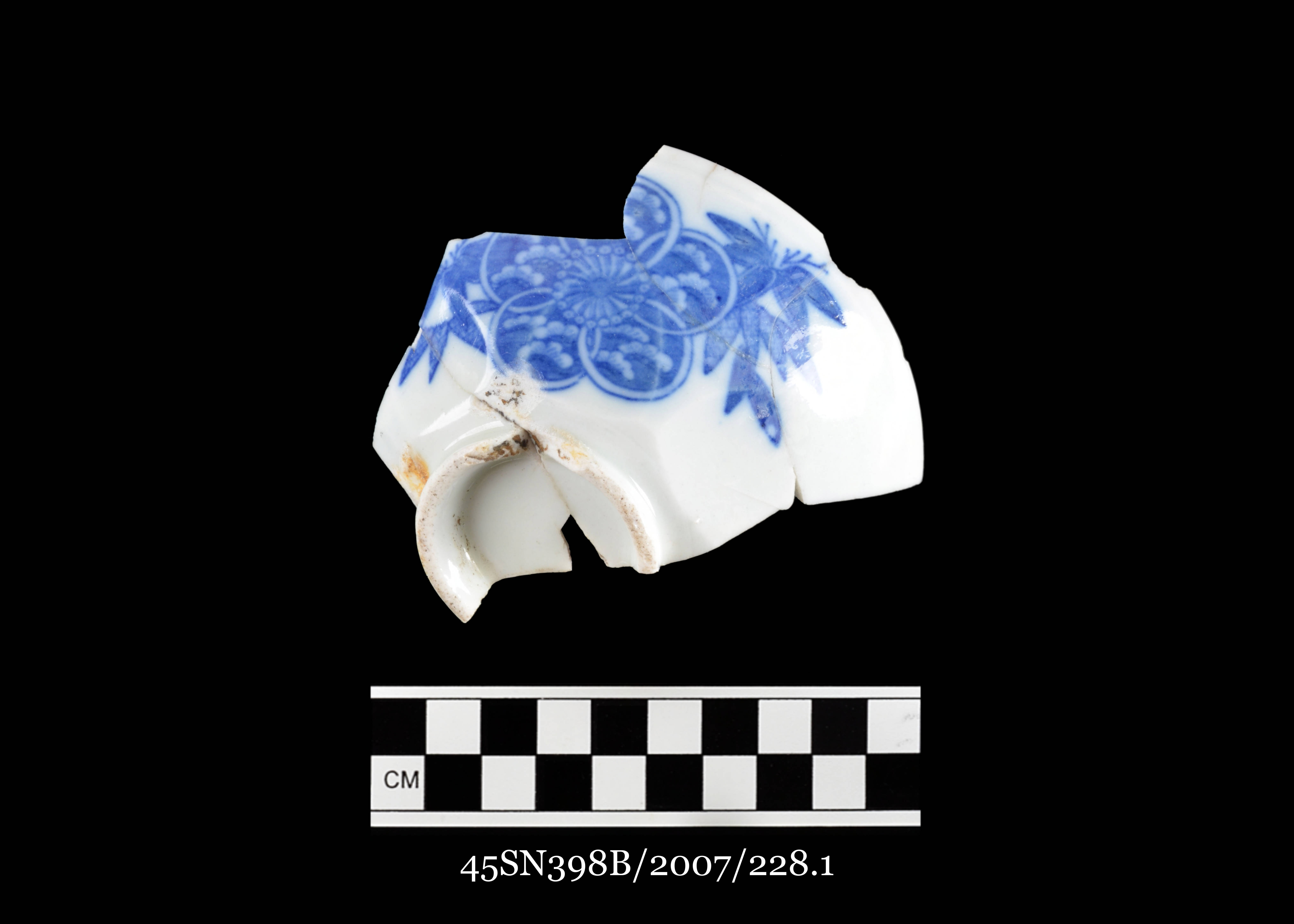 Side of Sometsuke Doban Sho Chiku Bai Gohan Jawan (rice/soup bowl with cobalt transferprint three friends design)