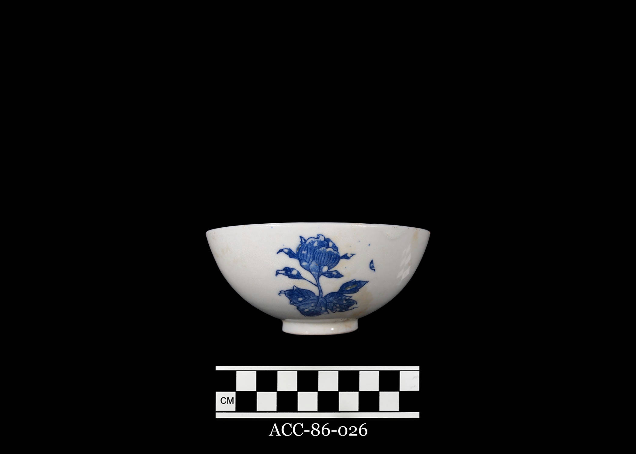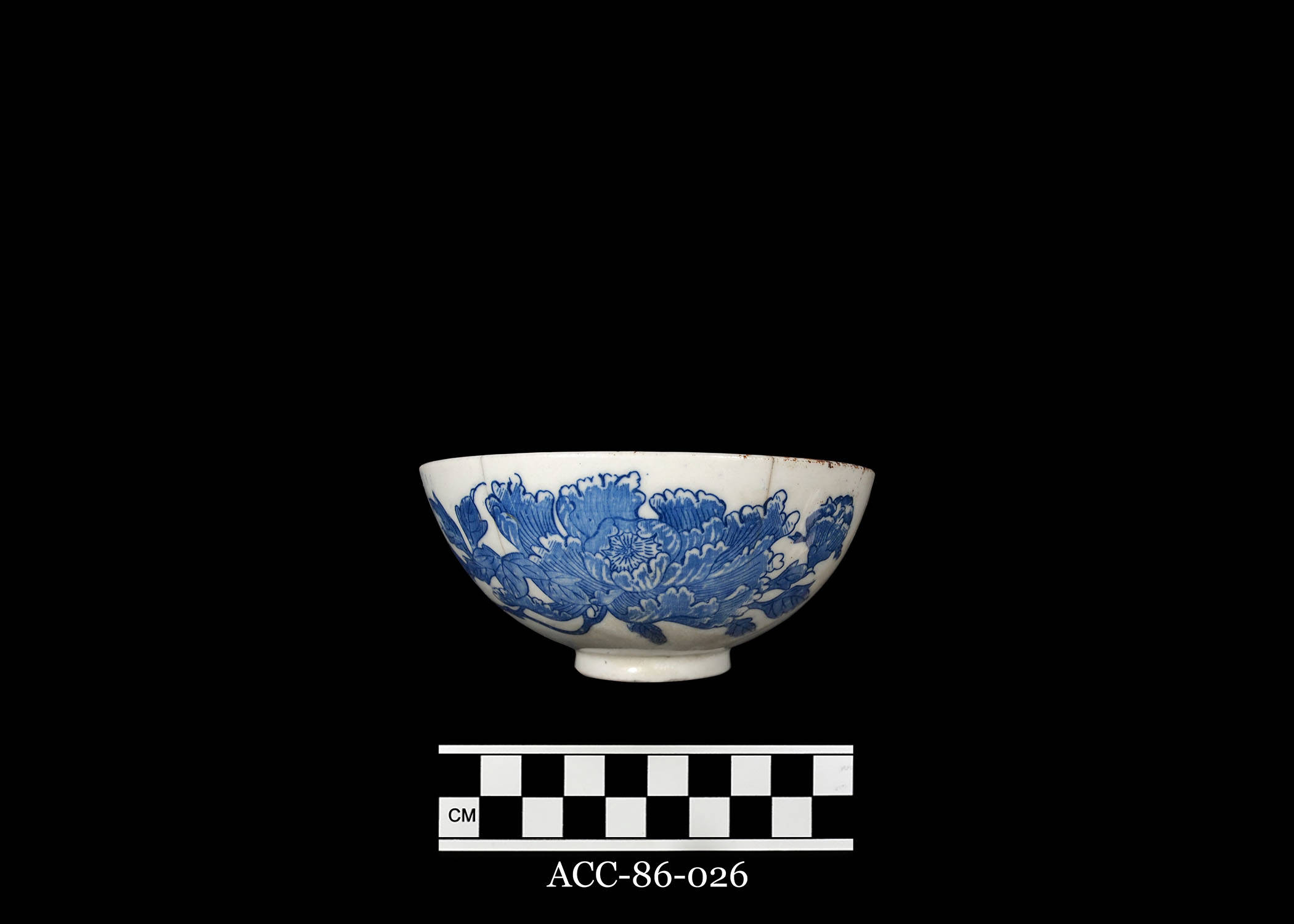 Side of Sometsuke Doban Botan Gohan Jawan (rice/soup bowl with cobalt transferprinted peony)