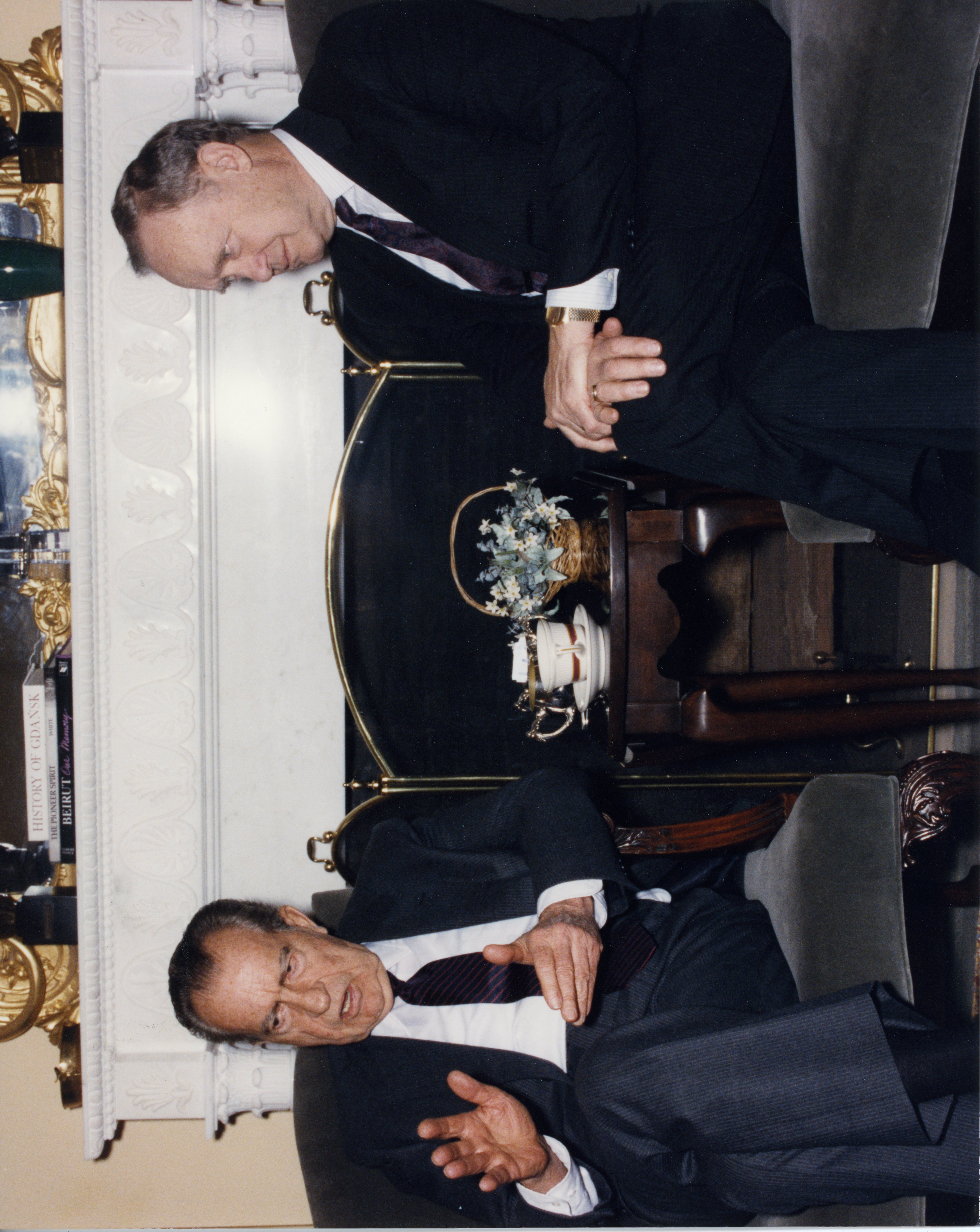 - Photograph of former president Richard M. Nixon sitting next to Senator James A. McClure