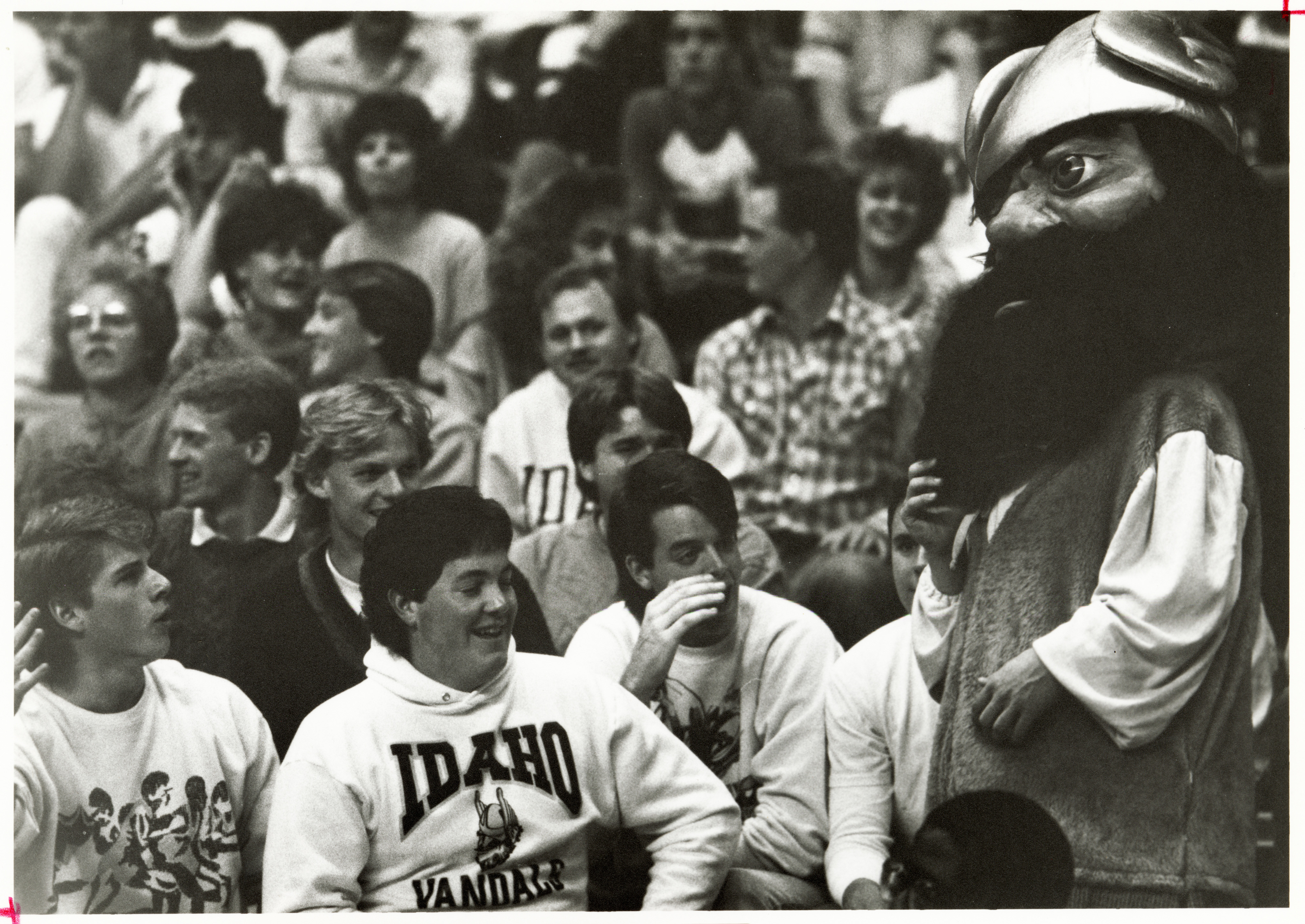 - Joe Vandal and spectators at a University of Idaho basketball game in the Kibbie Dome.