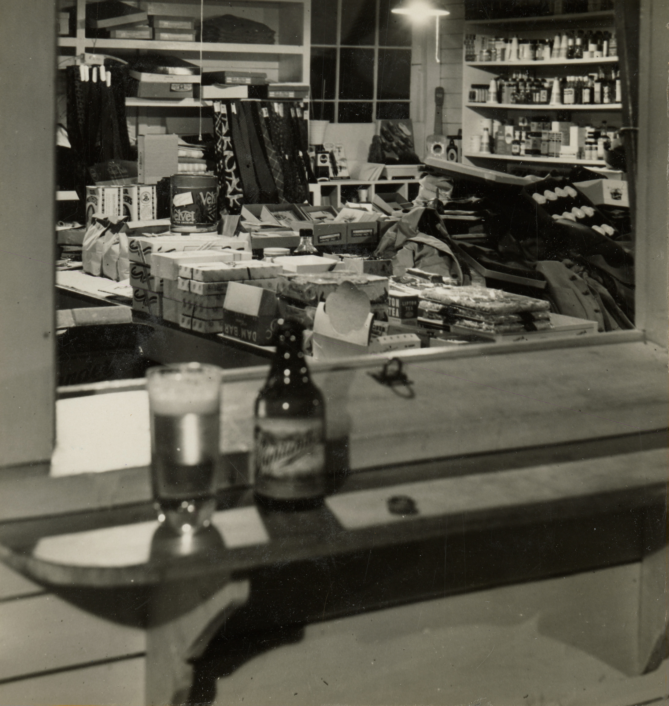 - Interior image of store merchandise in back room from a window at the front counter at Kooskia Internment Camp. Photo taken from 12-3/4 x 15-1/4 Photograph album of the Kooskia Japanese Internment Camp.