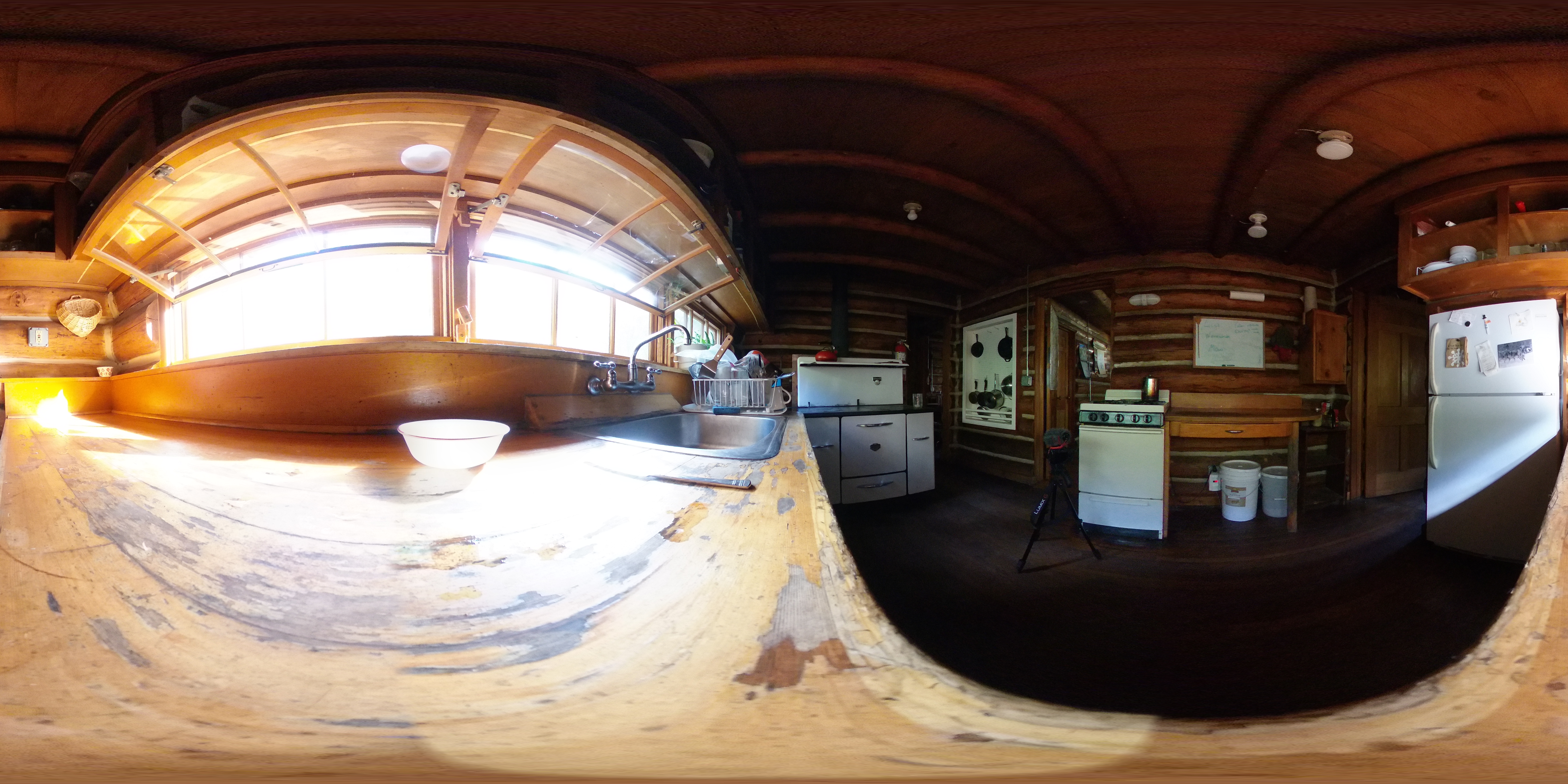 - Interior panorama of the Jess Taylor cabin kitchen. The cabin serves as the primary residence for TWRS station managers.