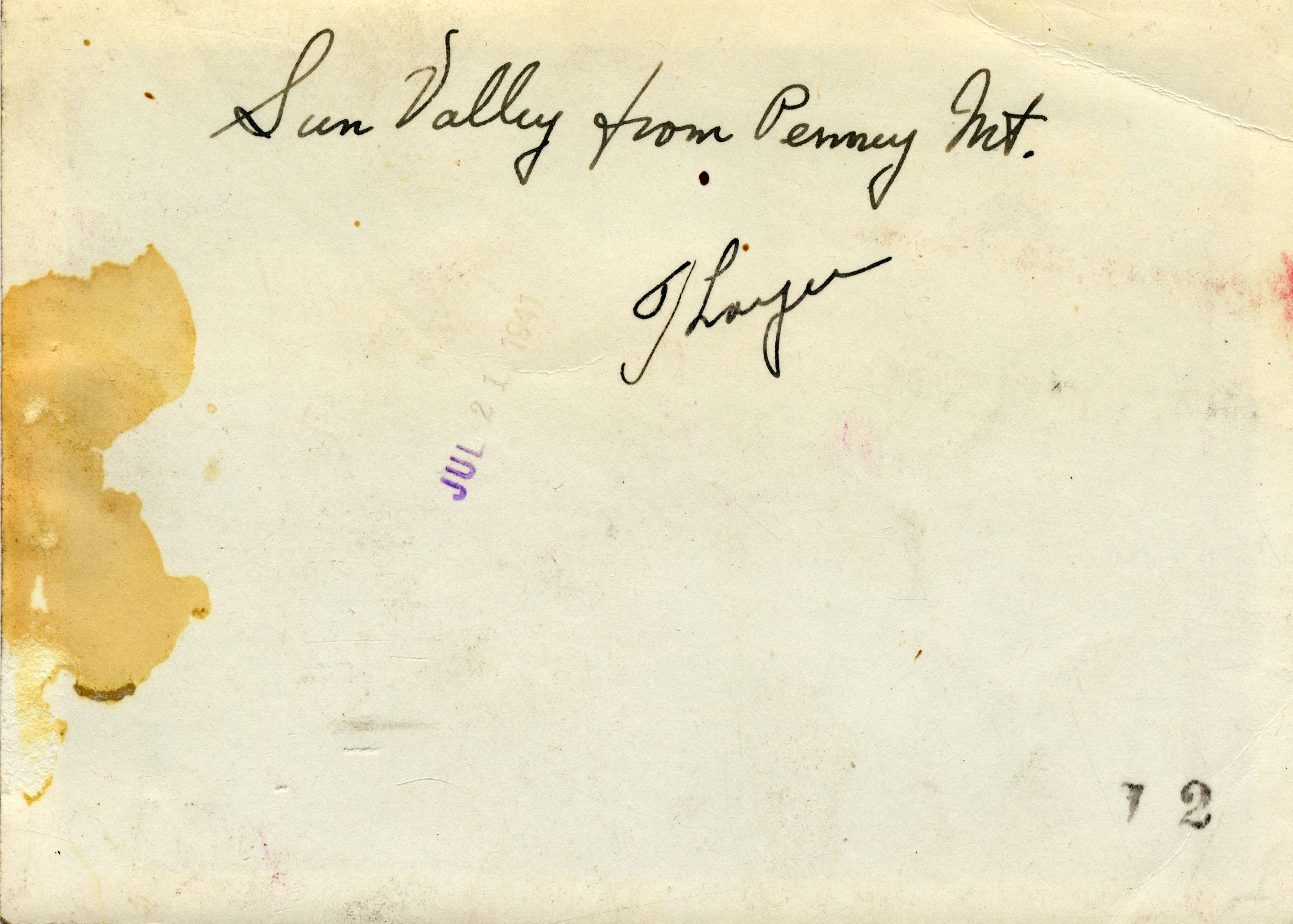 - "Sun Valley from Penny Mt., Thayer", Sheldon Z. and Vernice Thayer Collection, University of Idaho Library Digital Collections, https://www.lib.uidaho.edu/digital/thayer/items/mg5792_010-015.html
