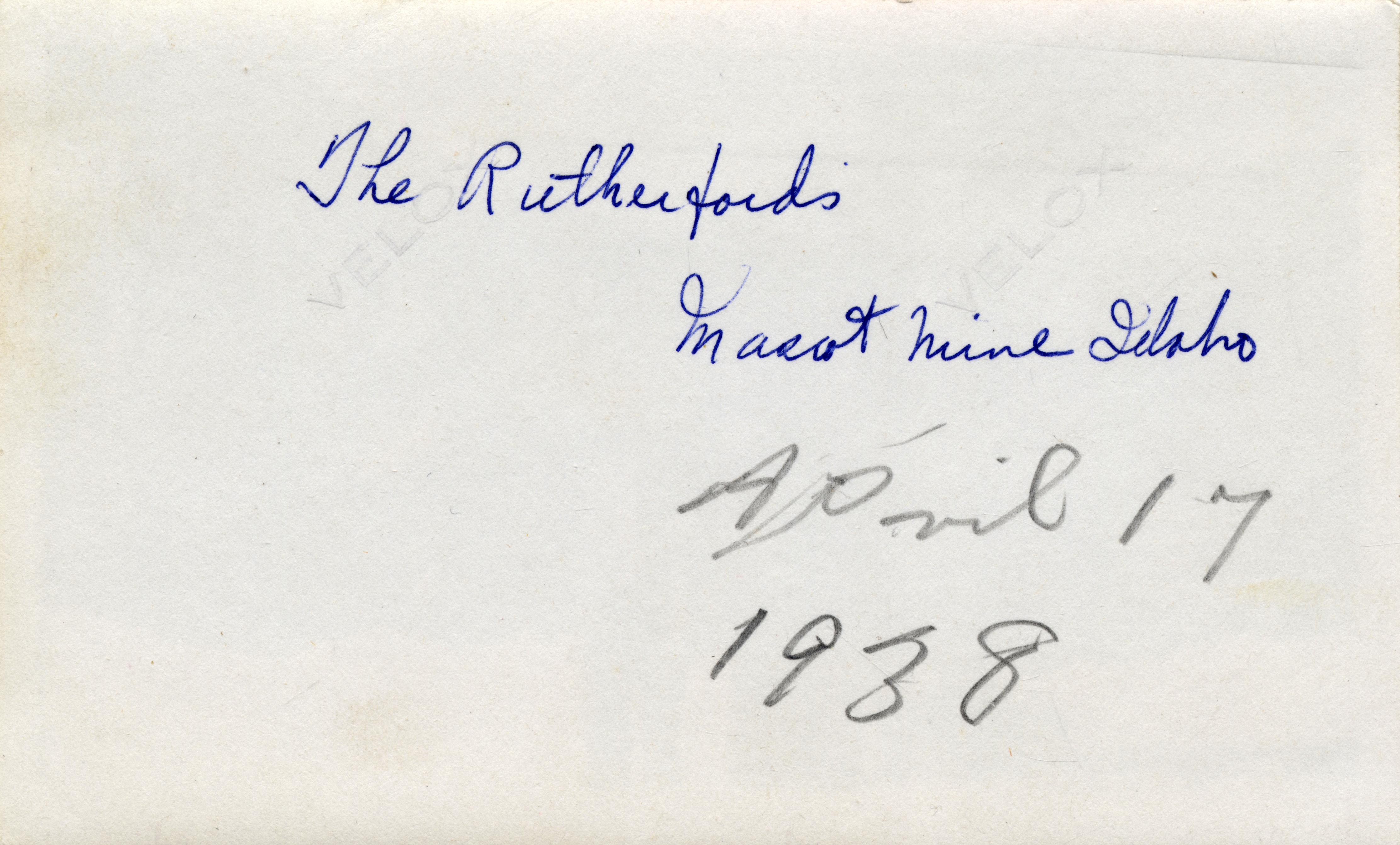 - "The Rutherfords Mascot Mine Idaho April 17 1938", Sheldon Z. and Vernice Thayer Collection, University of Idaho Library Digital Collections, https://www.lib.uidaho.edu/digital/thayer/items/mg5792_024-010.html
