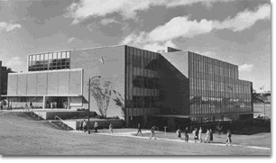 Eventually, in March 1955, the state legislature approved $1.3 million about $550,000 short of the requested amount. And within weeks, the university chose a different site, just north of the Memorial Gymnasium. This site, not adjacent to the cherished Administration Building, meant a significant cost saving: the library could be designed as a relatively plain "box" devoid of any gothic bric-a-brac necessary to blend with the admin building.