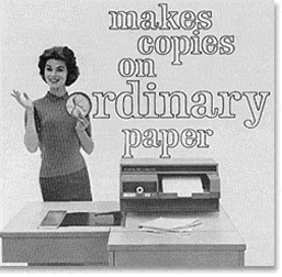 In January 1964 the modern era truly arrived when the library acquired its first dry-process photocopier a leased Xerox 914 for public and staff use (but kept behind the loans desk). And photocopying skyrocketed. The previous year, staff had made about 1,000 copies on a small portable Contura copier which required freshly-stirred chemicals for each use. By contrast, during 1964, 61,000 copies were churned out on the new Xerox, with users paying a then-hefty 10 cents a copy. Indeed, the volume was high enough to justify continuing to lease the $30,000 Xerox. And there were other benefits, noted the March 1964 Bookmark: "Across the country, research libraries are restricting the loan of their journals and substituting photocopy instead. This saves time, wear and tear on library materials, and allows the borrower a permanent copy." Staff also hoped the copier would reduce theft and mutilation of books. And the following April, 1965, the library gained its first coin-operated copier (a Vicomatic) in the lobby. In October 1964, the library began a massive project to re-classify its entire collection from the Dewey Decimal System (the favorite of public libraries) to Library of Congress (the system favored by the overwhelming majority of academic libraries). The project would occupy the next eight years. And in June 1967, after 19 years at the helm, Zimmerman retired at the mandatory age of 65. Next: Postmodernism |