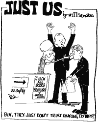 Thus, wrote Force, "at the end of 24 months of construction, destruction, disruption, dust and noise, we'll have a new, distinctive and functional library designed to serve the university into the next century." Indeed, as of 2000, both the building and CARL catalog were still in use, though CARL had undergone several upgrades, including a Web interface in the summer of 1997. Rampant increases in the prices of academic journals continued to play havoc with the library's budget and to require the cancellation of many titles, to the chagrin of many researchers. Meantime, the library's provision of databases continued to grow albeit slowly by today's standards. Most article indexes in the early '90s were on CD-ROM, not online. By late 1990, however, students and staff could search the online Medline database "free," proclaimed The Bookmark for a few hours each weekday afternoon on library computers. (Today, Medline is but one of several dozen databases freely accessible to staff and students via the library's website, 'round the clock, from any Web computer. And increasingly, these databases provide the full-text of articles, representing a shift away from paper journals, not to mention paper indexes.)