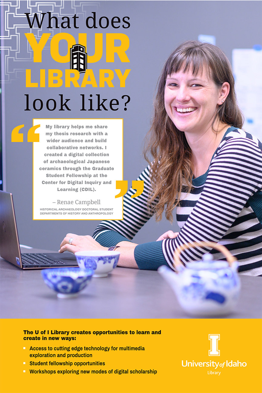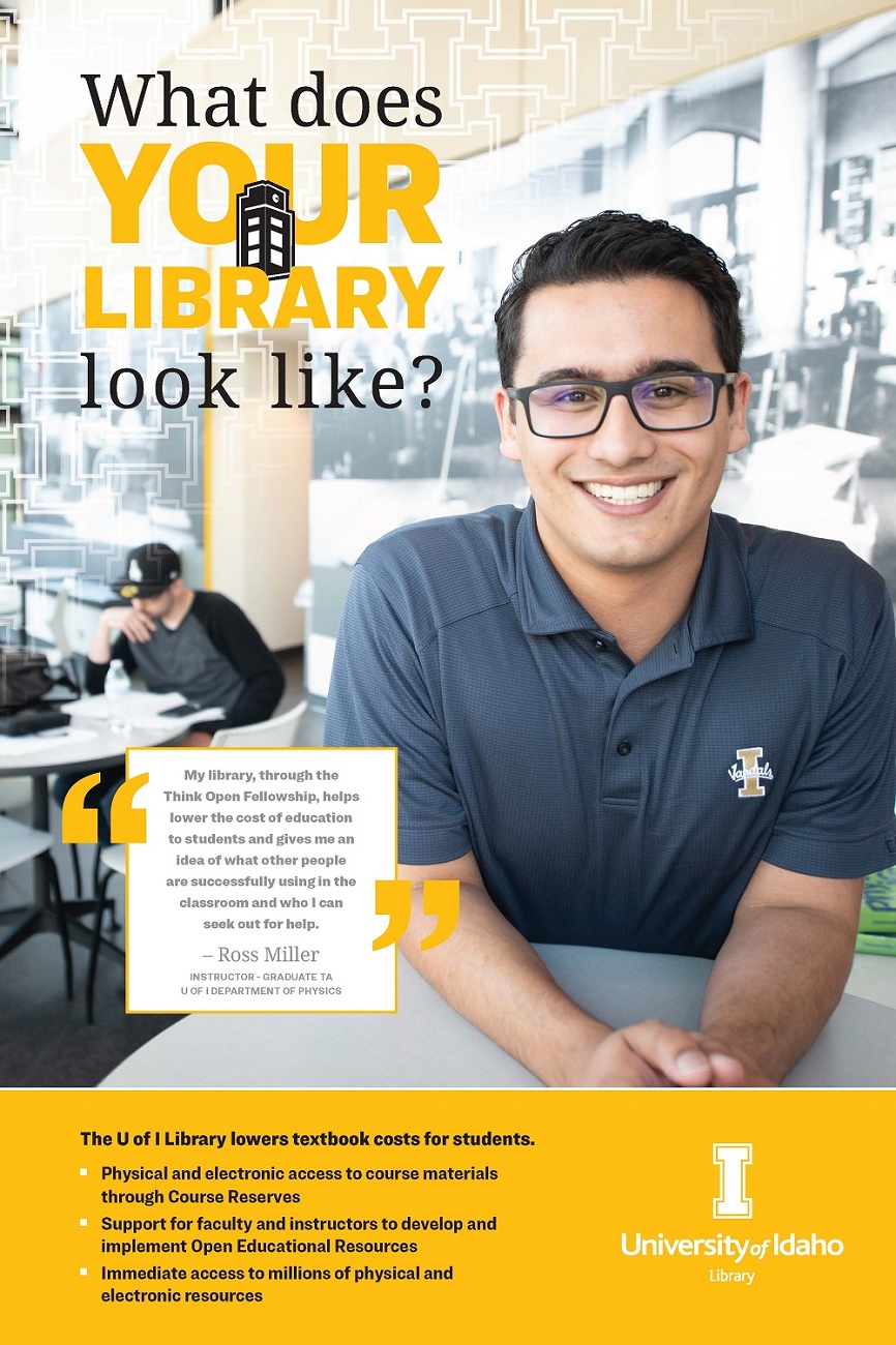 The My Library campaign features timely, real-life library stories highlighting University of Idaho students and little-known library services by asking, "What does your library look like?" We hope sharing real student experiences will help reveal solutions to your educational needs and expand your perception of the possibilities at the library!