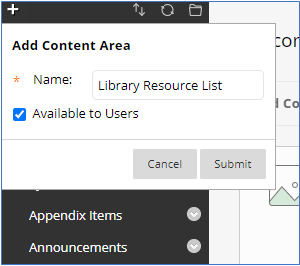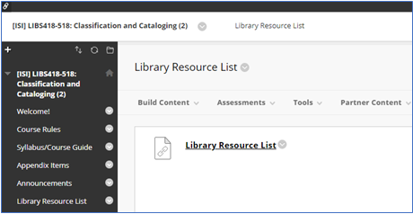 - Select the “Library Resource List” option. This will add the link to your new module.