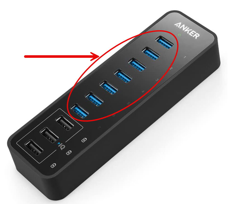 If you are using the Studio iMac computer, plug the flash drive into a blue port on the Anker Data Hub.